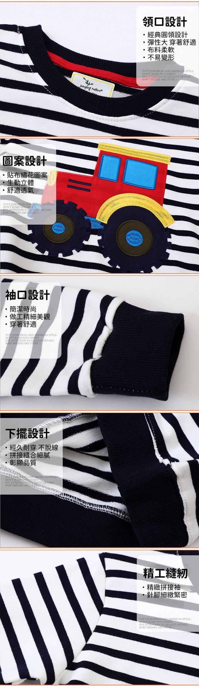 Jumping meters - 圓領棉質長袖上衣/大學T-滿滿工程車-藍色