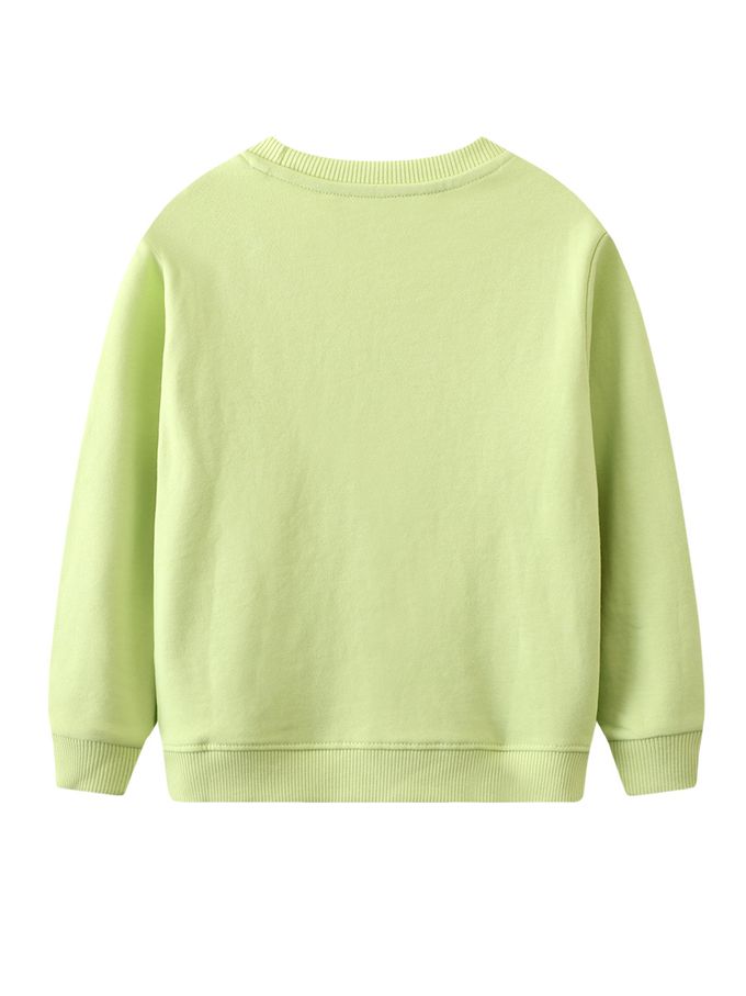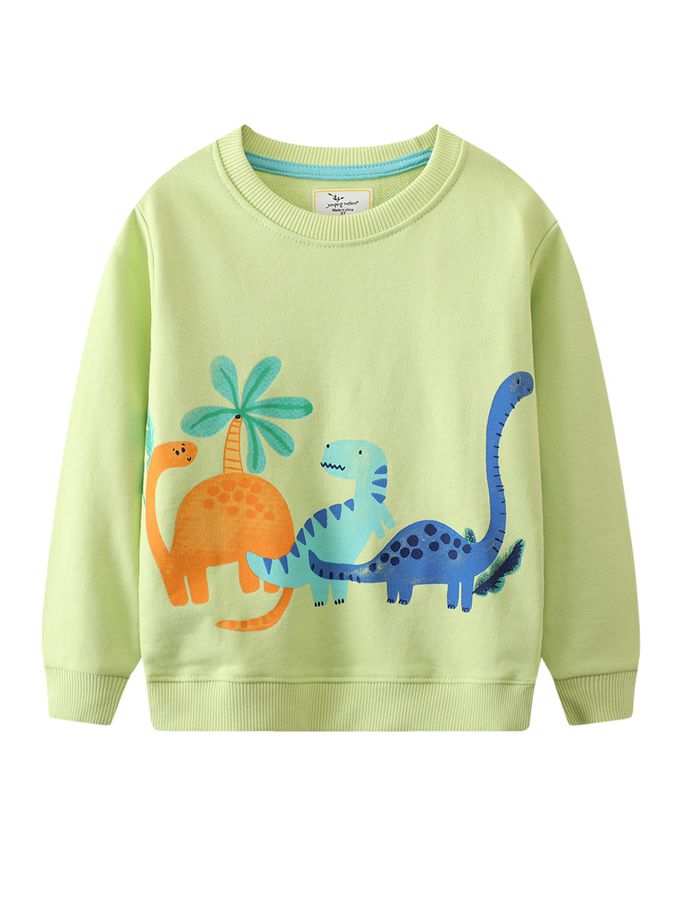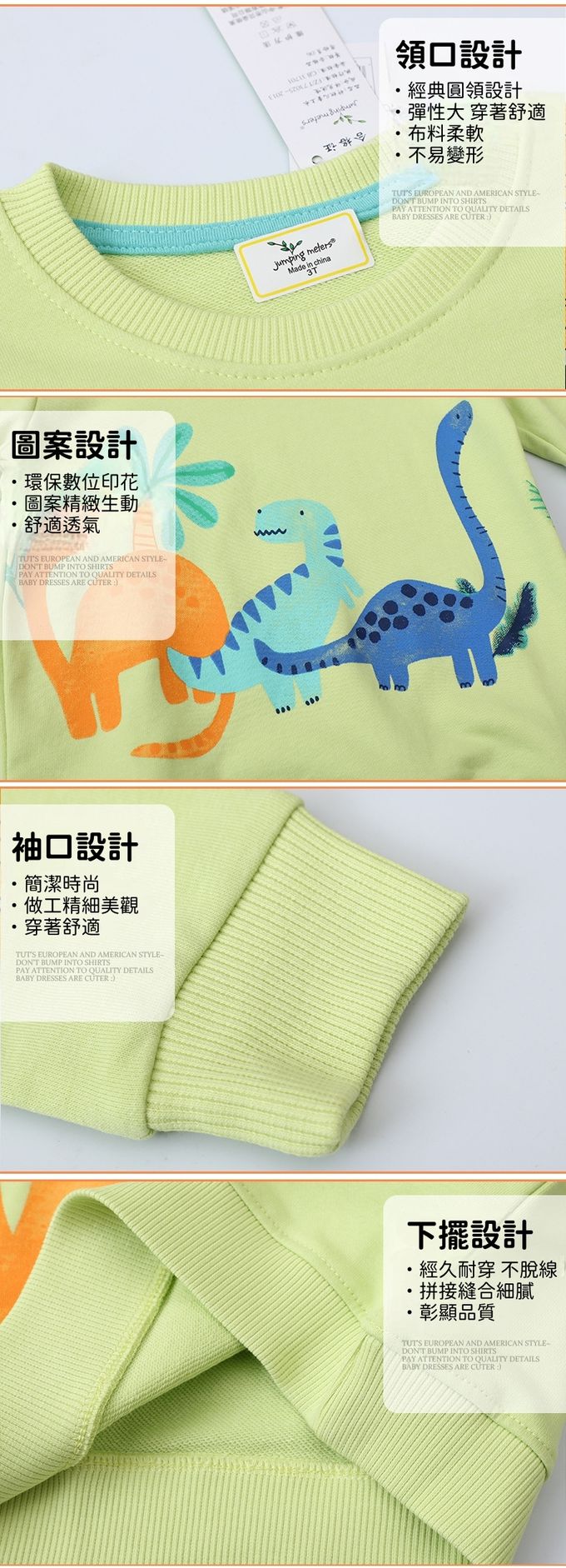 圓領棉質長袖上衣/大學T-恐龍排隊中-綠色