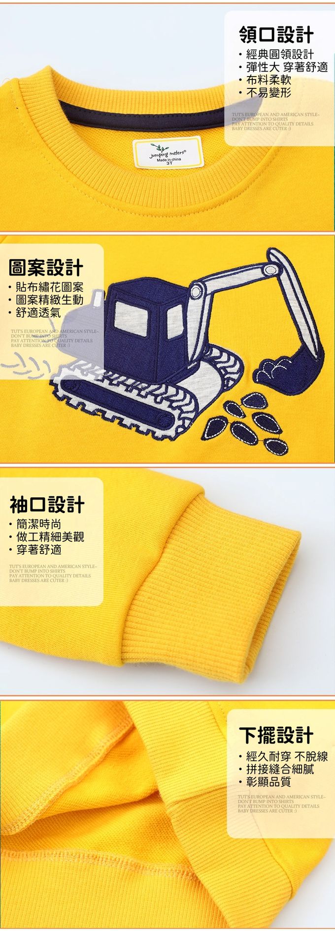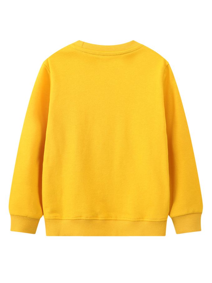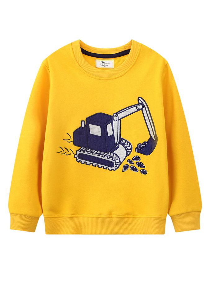 圓領棉質長袖上衣/大學T-挖土機工作中-活力黃