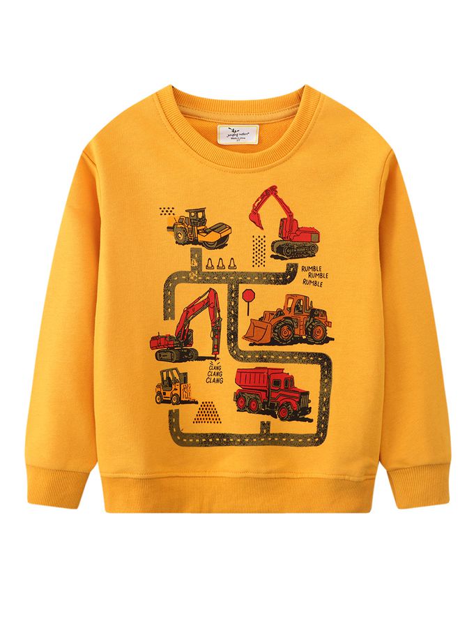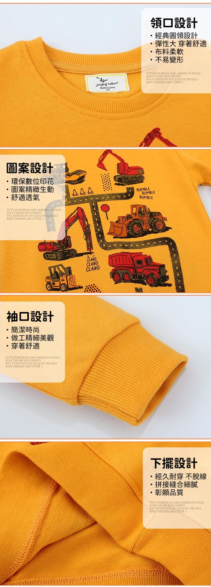 Jumping meters - 圓領棉質長袖上衣/大學T-工程車路線-活力黃