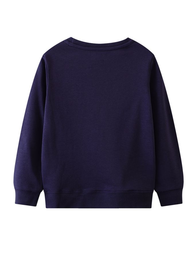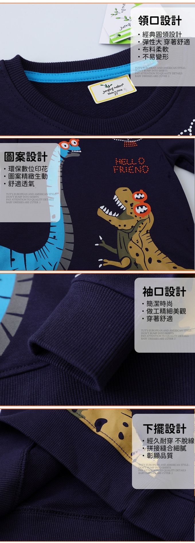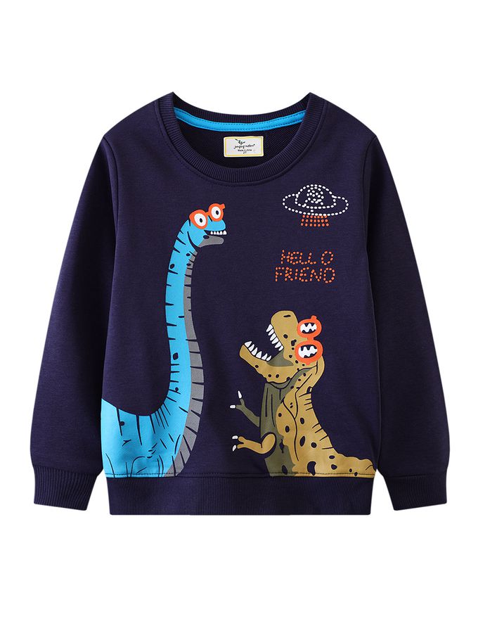 圓領棉質長袖上衣/大學T-恐龍幽浮-藏青