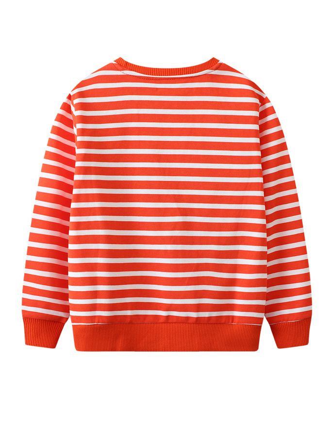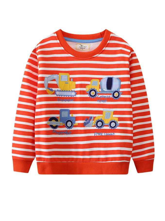 圓領棉質長袖上衣/大學T-工程車車-橘色條紋
