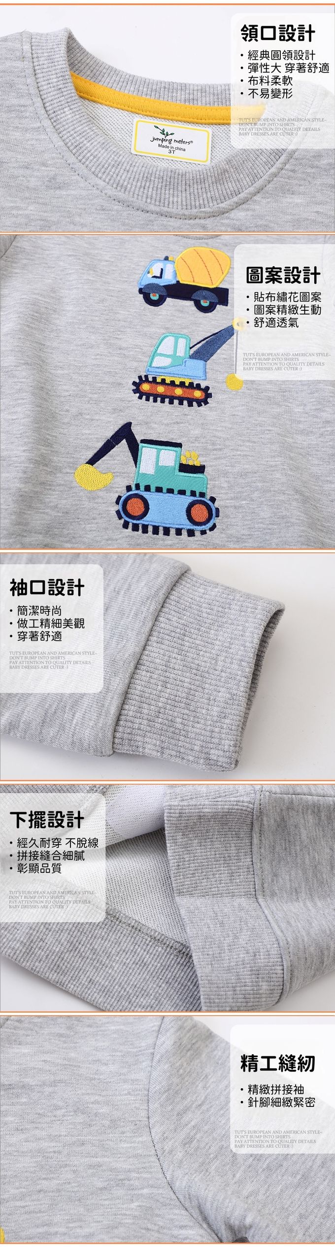 圓領棉質長袖上衣/大學T-貼布繡工程車-灰色