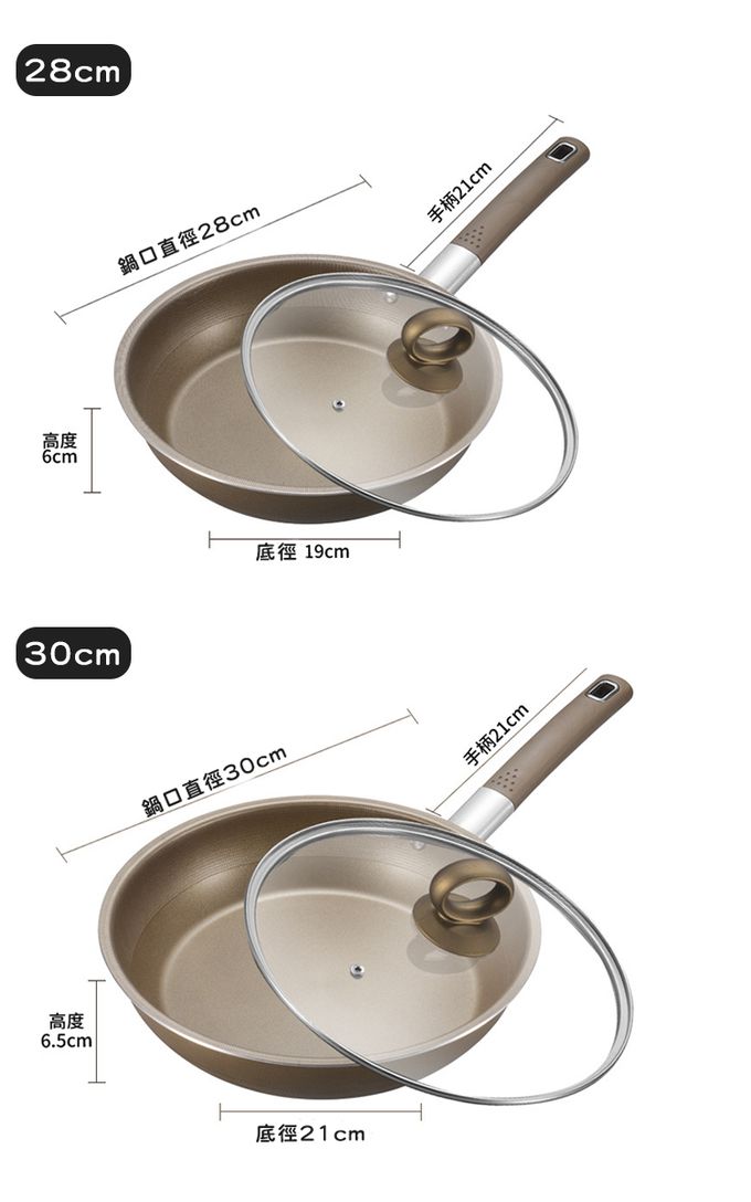 詳細尺寸:鍋直徑28cm 鍋底19cm 手柄-21cm