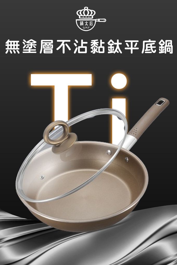 鍋太后 - 無塗層不沾黏鈦鍋/鈦合金平底鍋/單柄帶蓋平底鍋-28cm