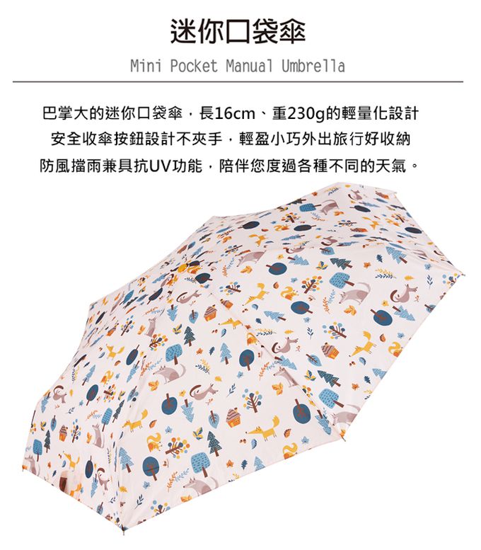 抗UV手開迷你口袋傘-森林嘉年華-230g