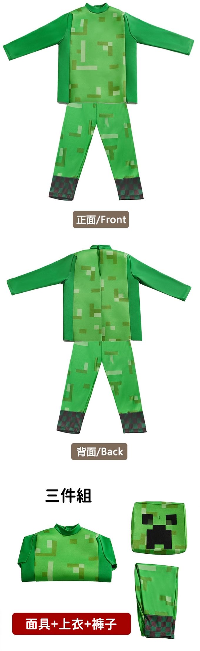 經典遊戲角色裝扮套裝-面具+上衣+褲子-綠色世界