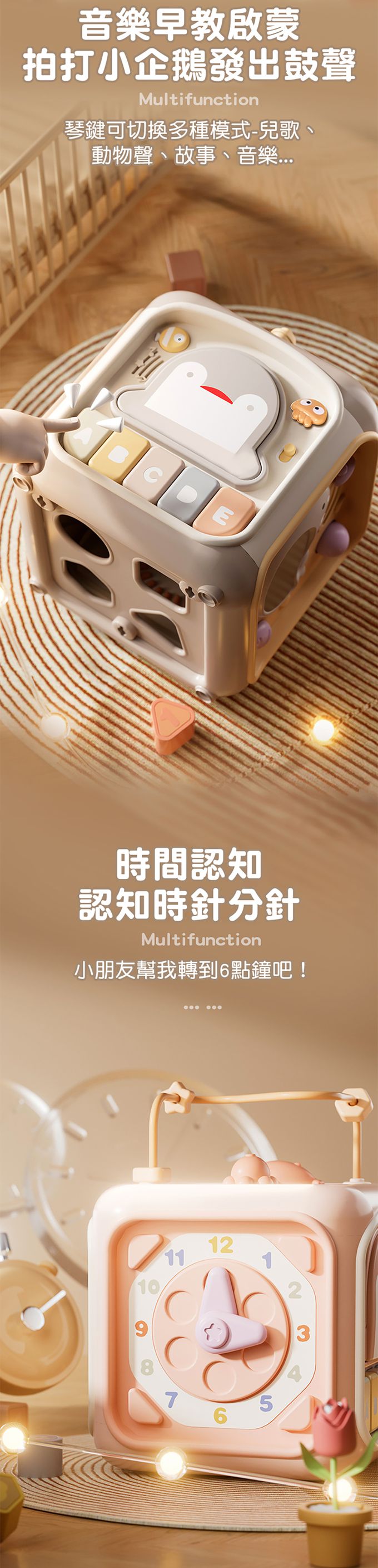 • 品名:六面體音樂燈光感統玩具 形狀配對 手拍鼓 手敲琴