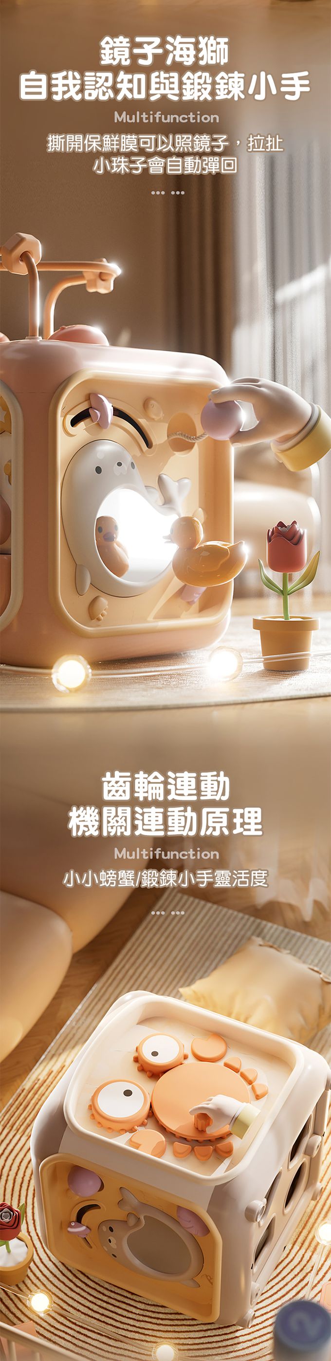 2.形狀配對/齒輪轉動/繞珠/鏡子/拍拍鼓等等....多面玩法等你來探索。