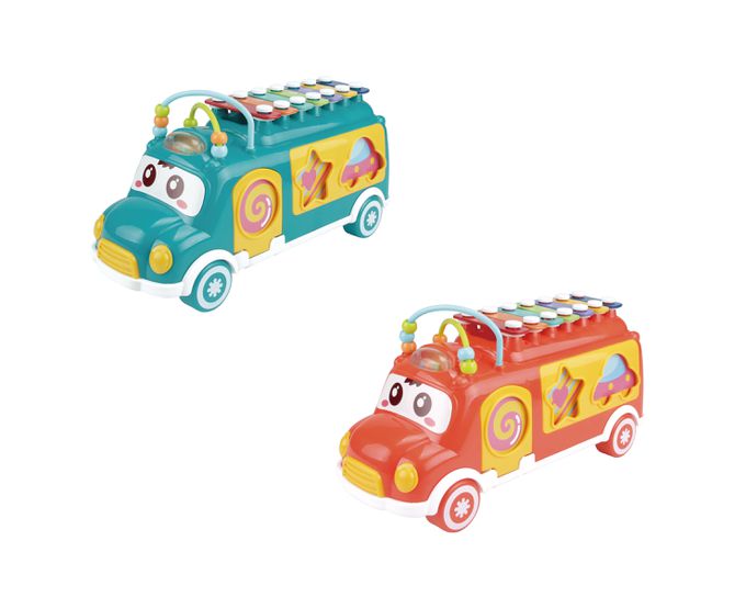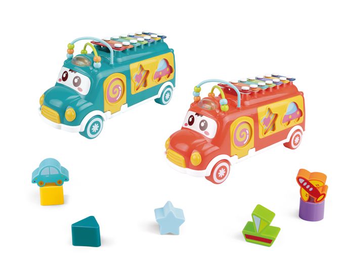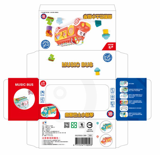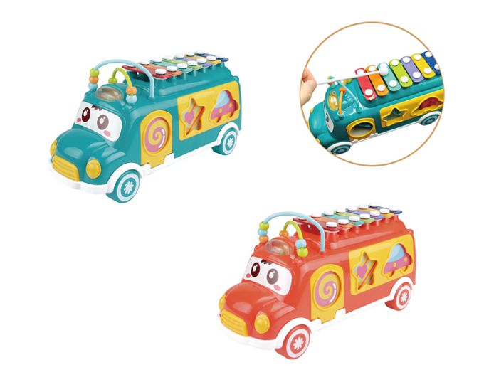 2.多功能四合一,既是可愛滑行小巴士,有模擬小算盤,也是兒童敲琴,還可以進行幾何圖形和交通工具的配對認知,樂趣加倍。