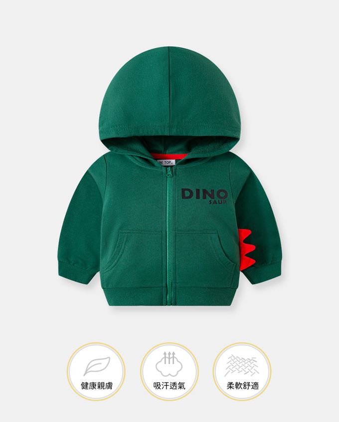 純棉立體造型連帽外套-恐龍聽音樂-墨綠