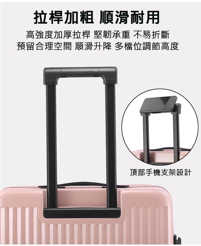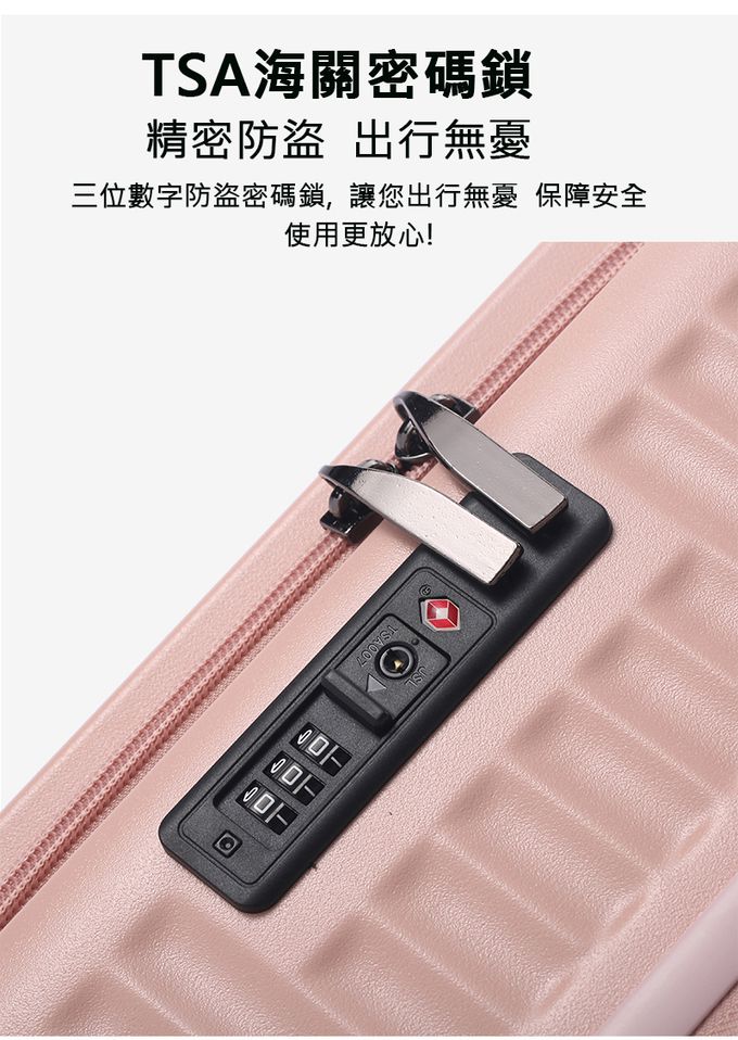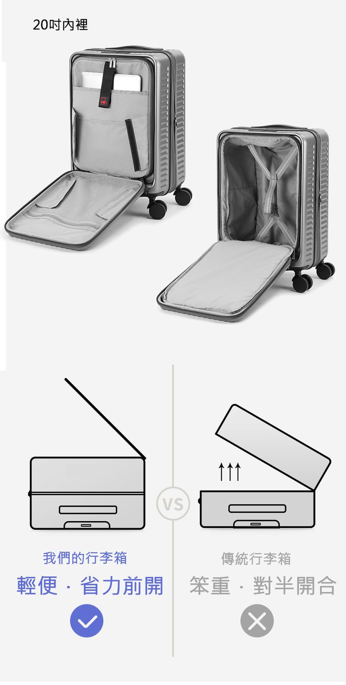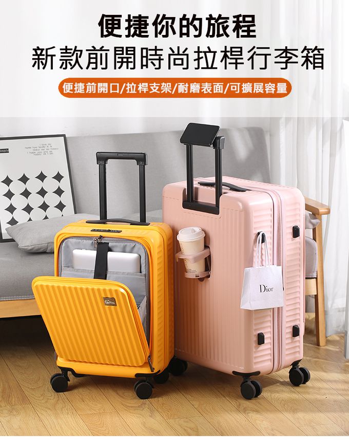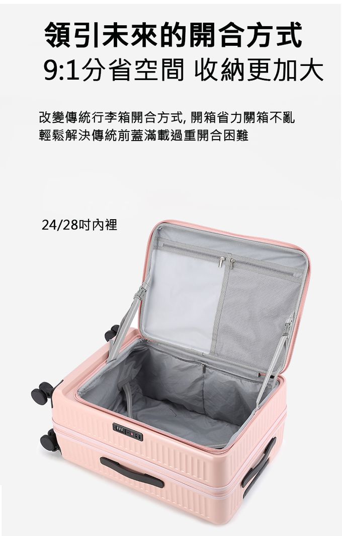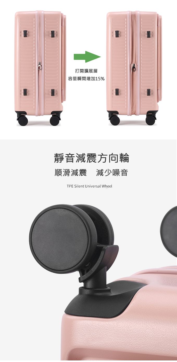 ☑️1:9前開設計, 有限空間 收納更強大☑️20吋款前開具備筆電夾層☑️可加大空間設計☑️全新ABS+PC材質,三層結構 防撞耐壓再加強☑️加厚三段金屬拉桿 還有手機架設計☑️TSA海關鎖☑️摺疊杯架放置飲料雨傘,雙手更輕鬆☑️360°飛機輪☑️箱側貼心掛構設計可掛小包