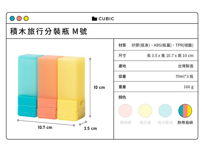 suzzi - 積木旅行分裝瓶 三件旅行組-繽紛 (M 70ml)