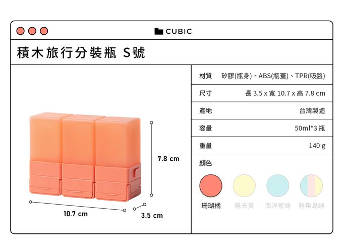 積木旅行分裝瓶 三件旅行組-珊瑚橘 (S 50ml)