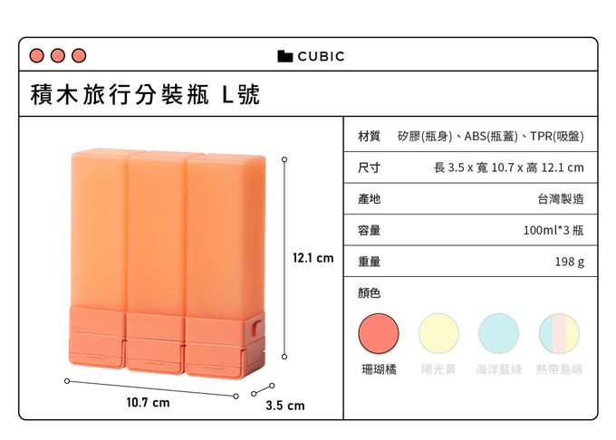 積木旅行分裝瓶 三件旅行組-珊瑚橘 (L 100ml)