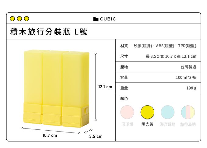積木旅行分裝瓶 三件旅行組-陽光黃 (L 100ml)