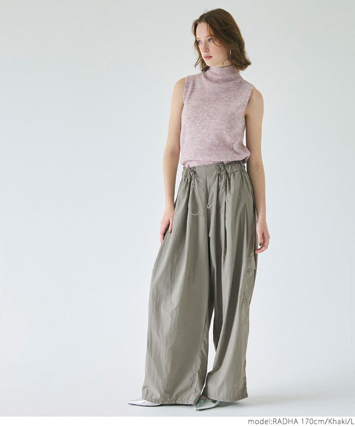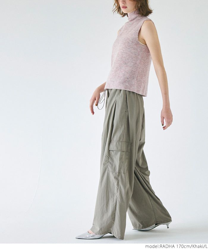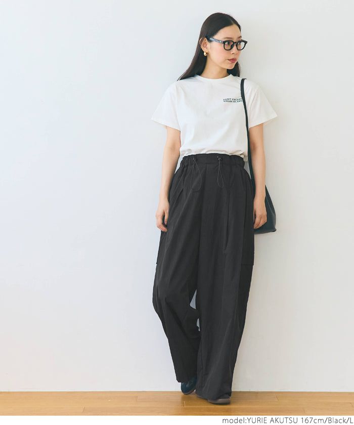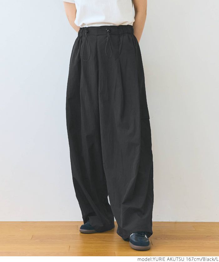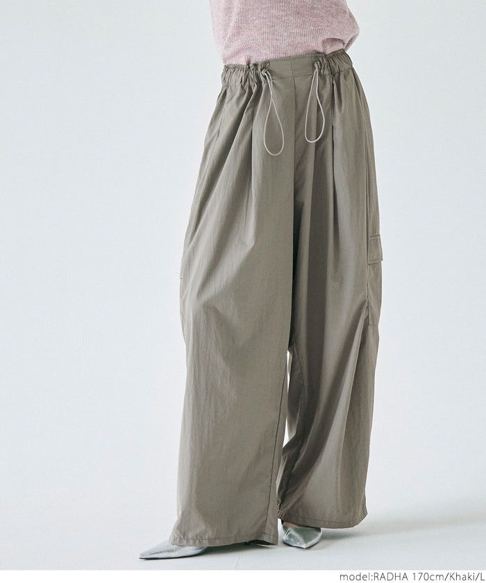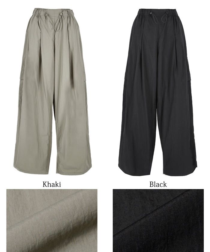 • 品名:防潑水 工裝風抽繩休閒寬褲