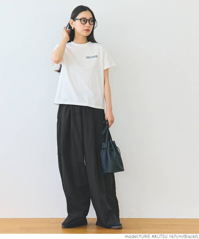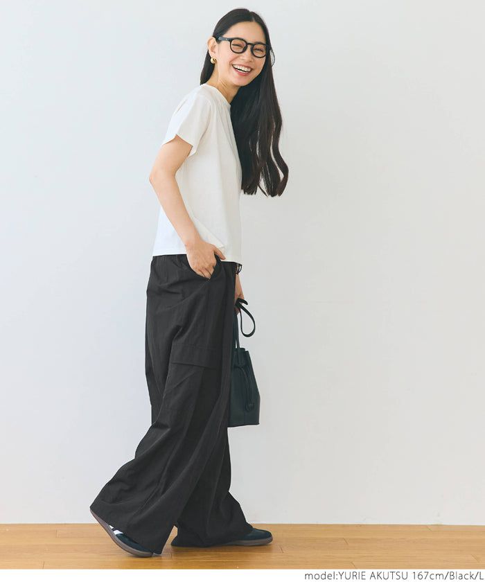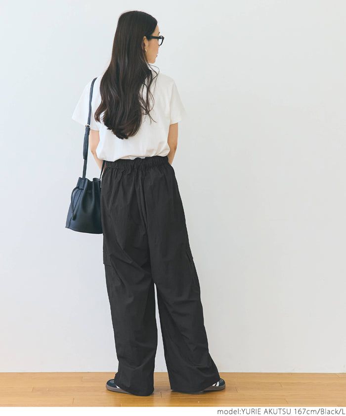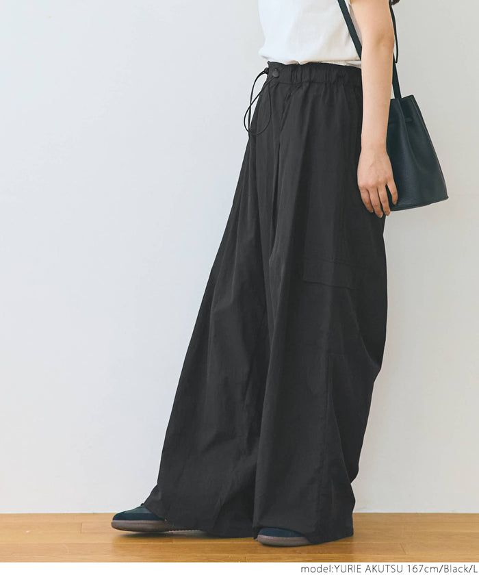 日本 COCA - 防潑水 工裝風抽繩休閒寬褲-黑