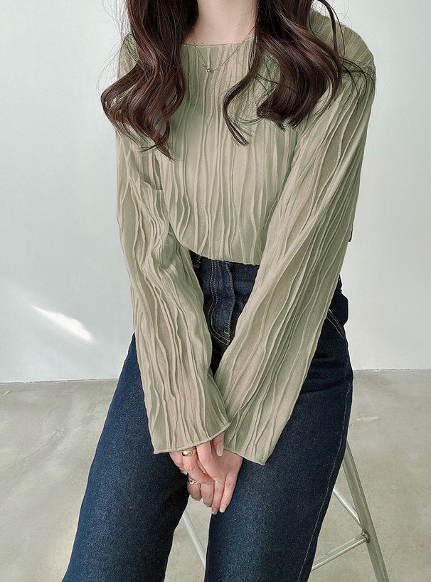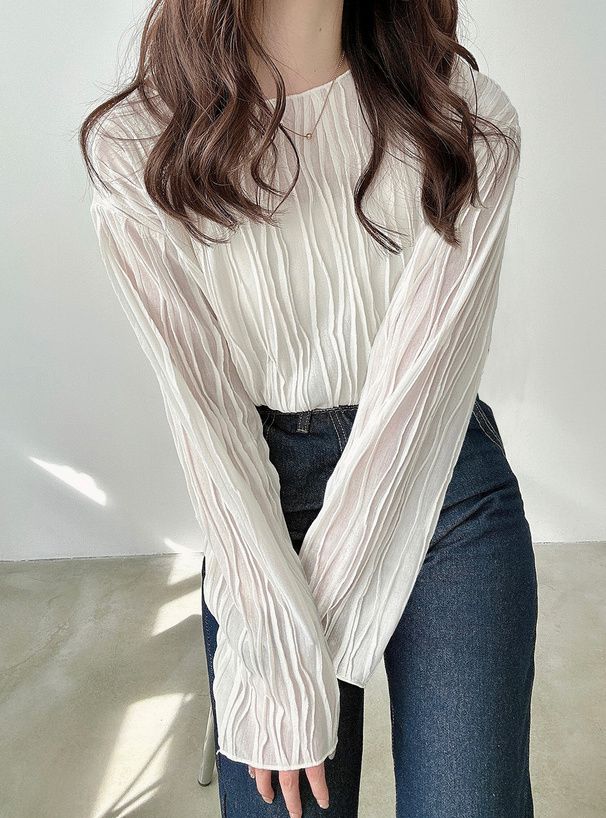 波浪紋理微透百搭長袖上衣