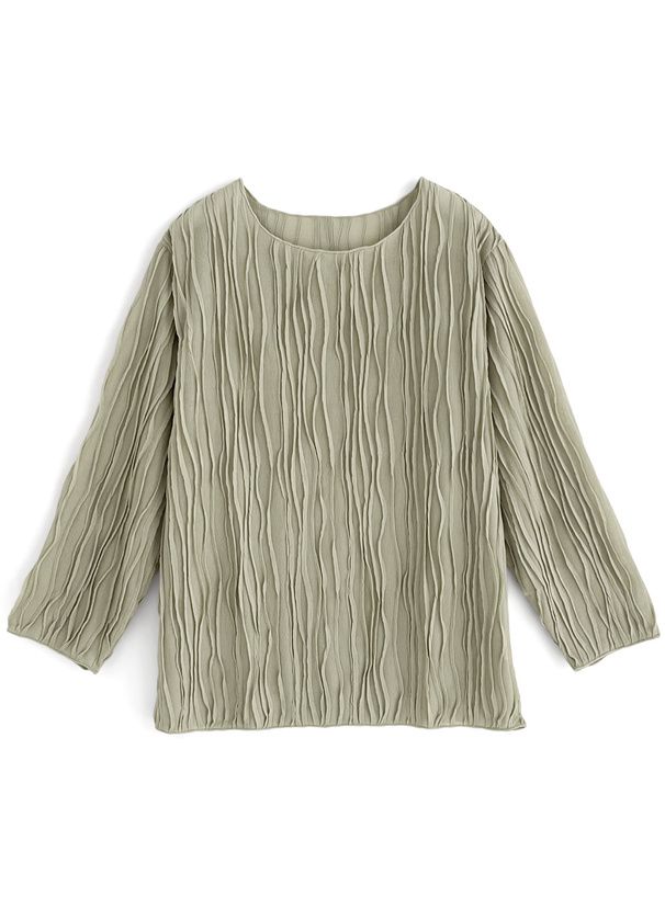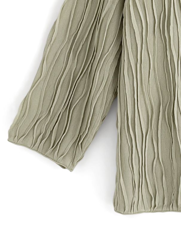 日本 GRL - 波浪紋理微透百搭長袖上衣-橄欖綠 (F)