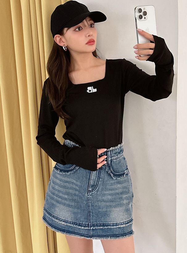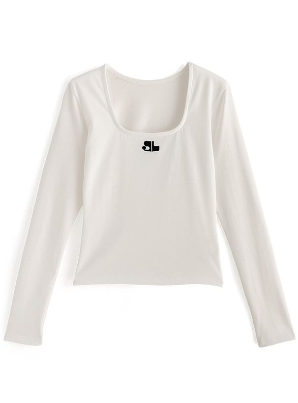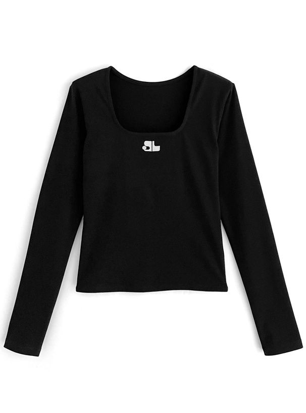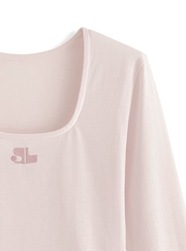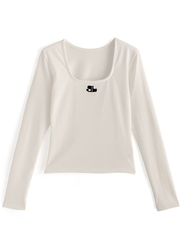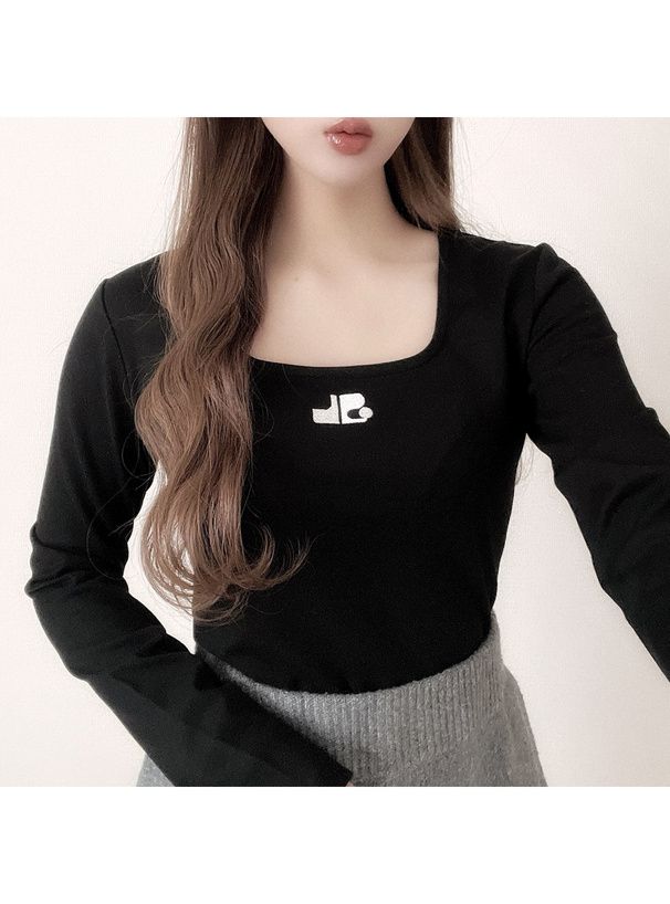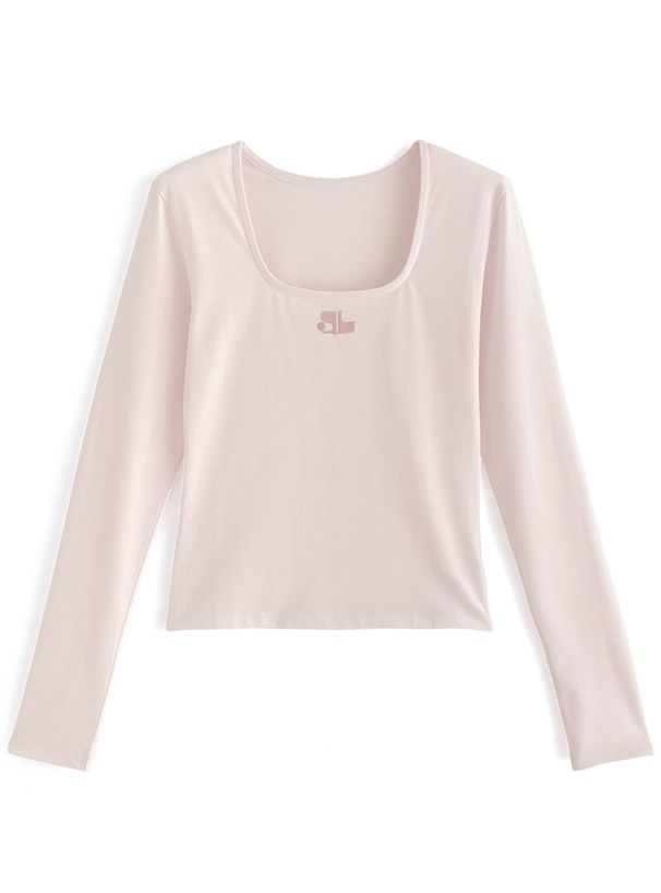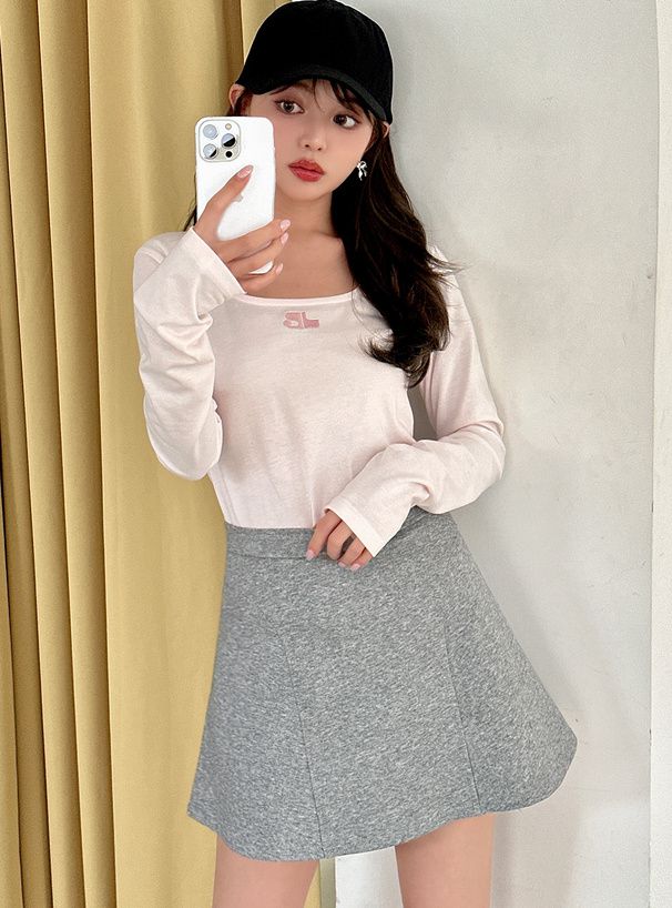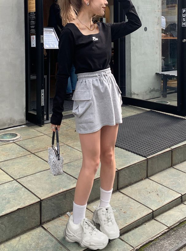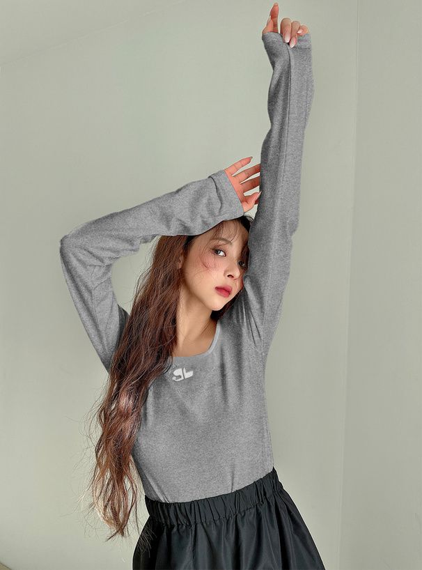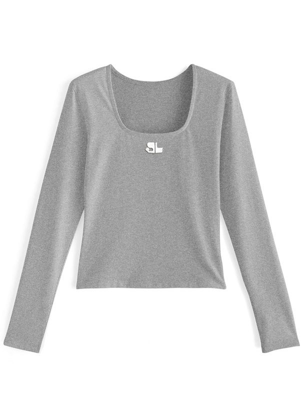 日本 GRL - 顯瘦大方領低調logo長袖上衣-灰