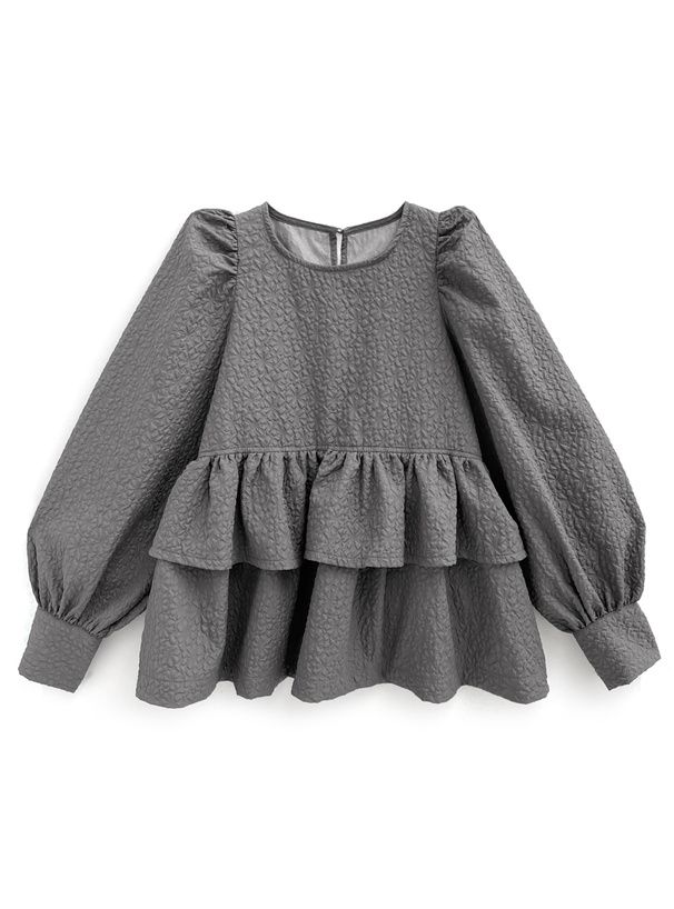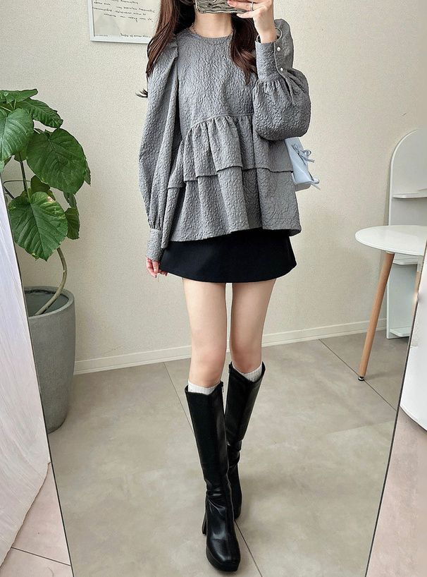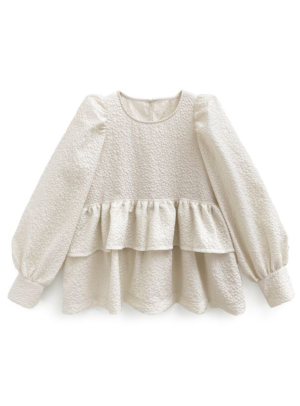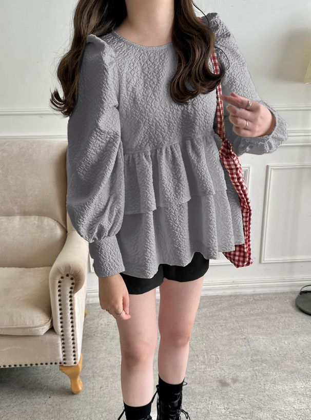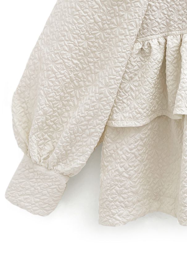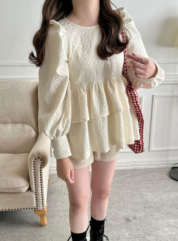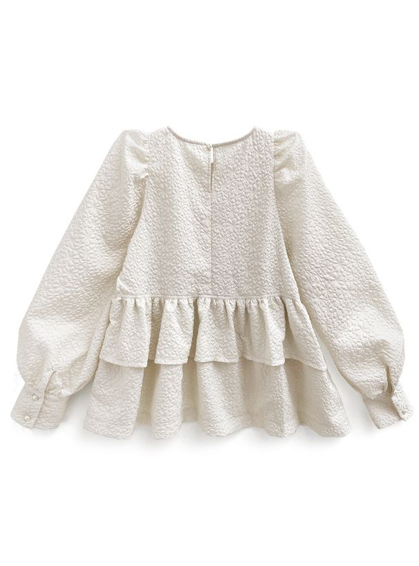 日本 GRL - 歐風紋理荷葉層次長袖上衣-象牙米 (F)