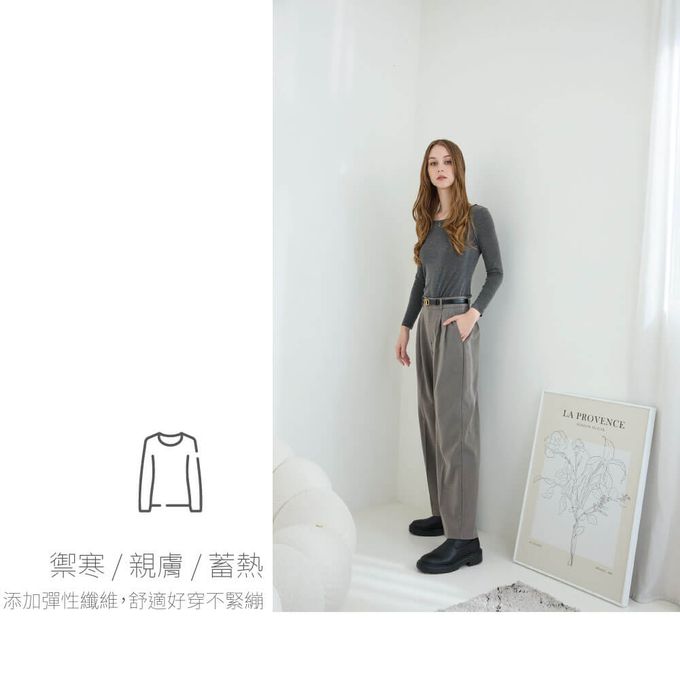 TENCEL日本吸濕發熱纖維保暖衣-女圓領-麻灰