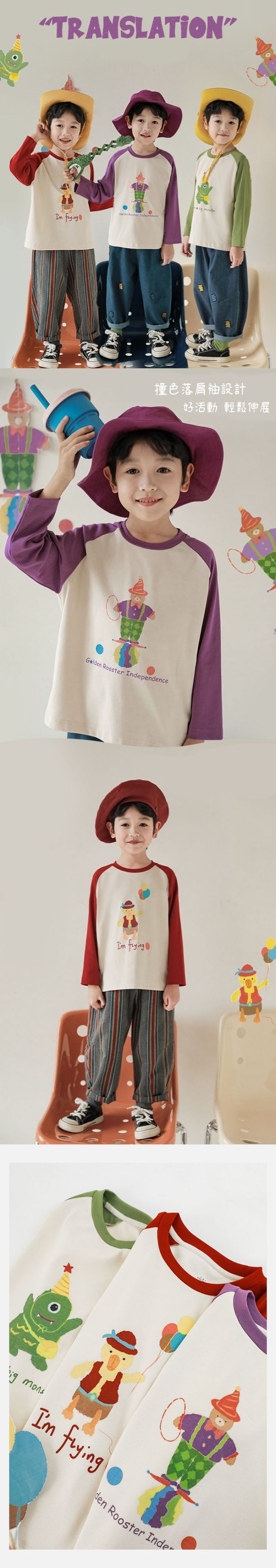 休閒圓領撞色長袖上衣-馬戲團熊熊-紫色