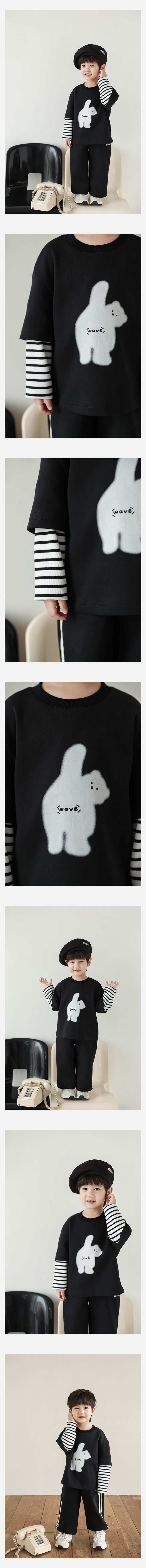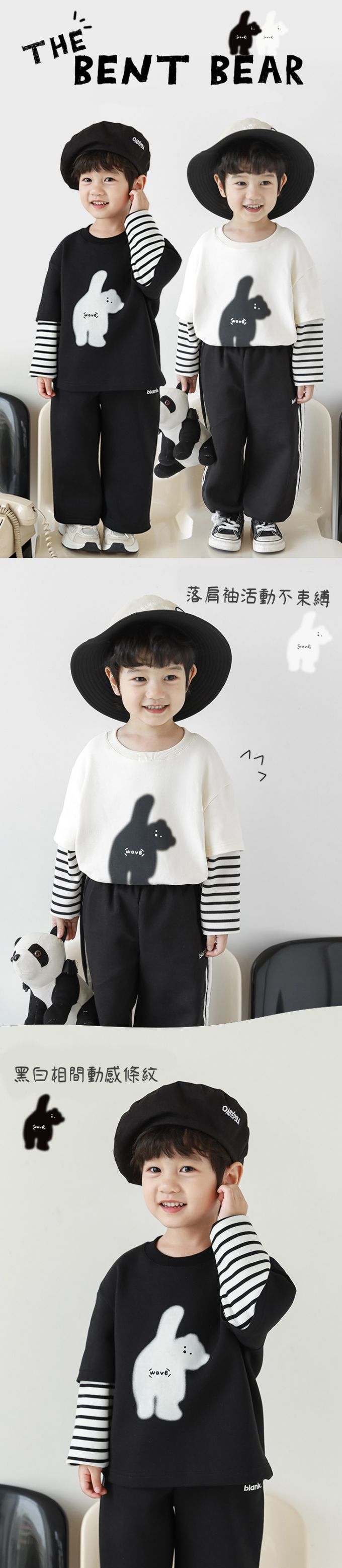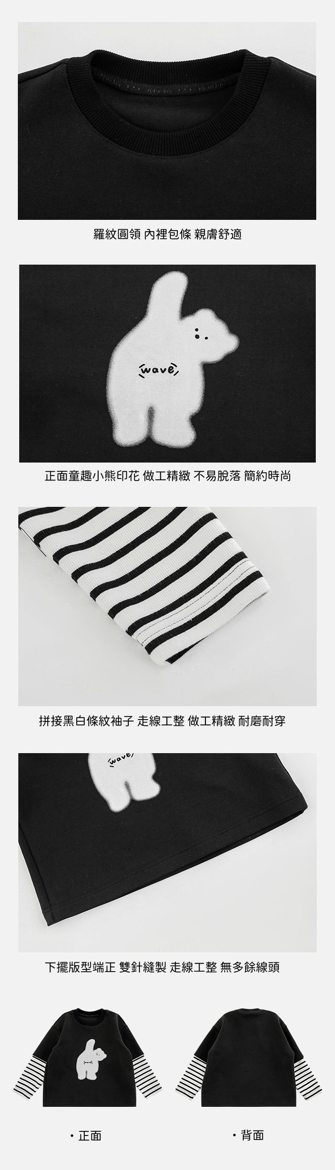 休閒圓領假兩件長袖上衣-小熊揮手手-米色