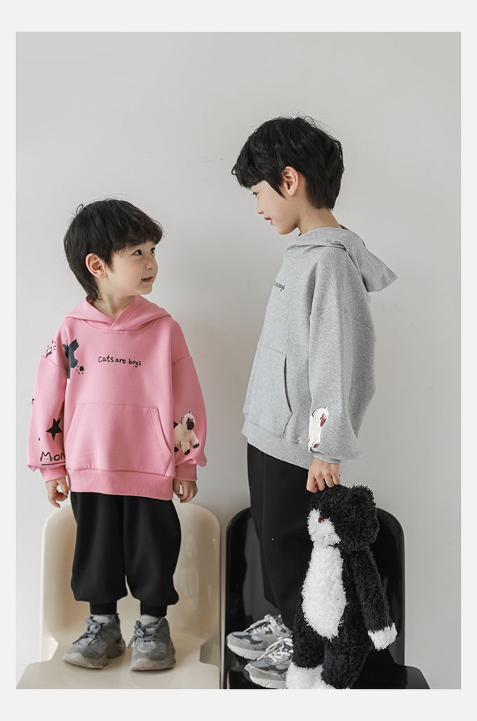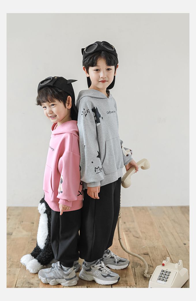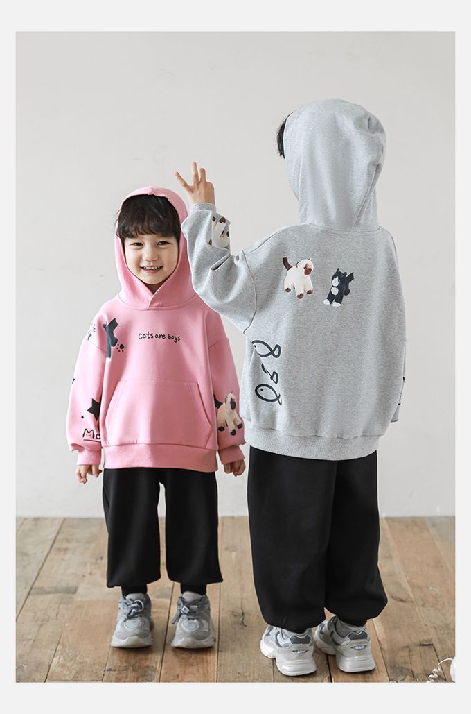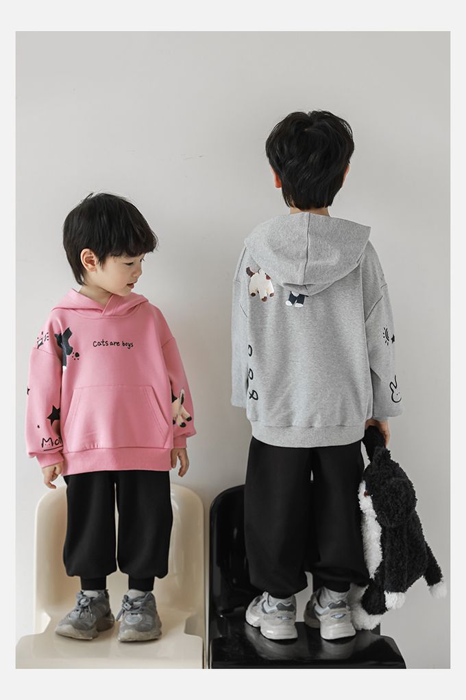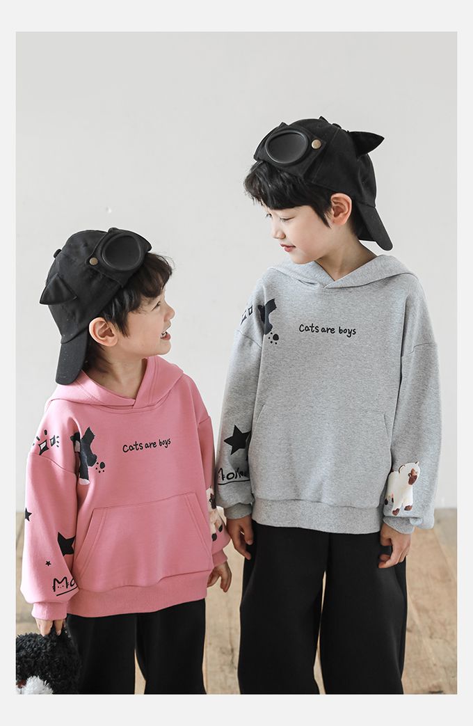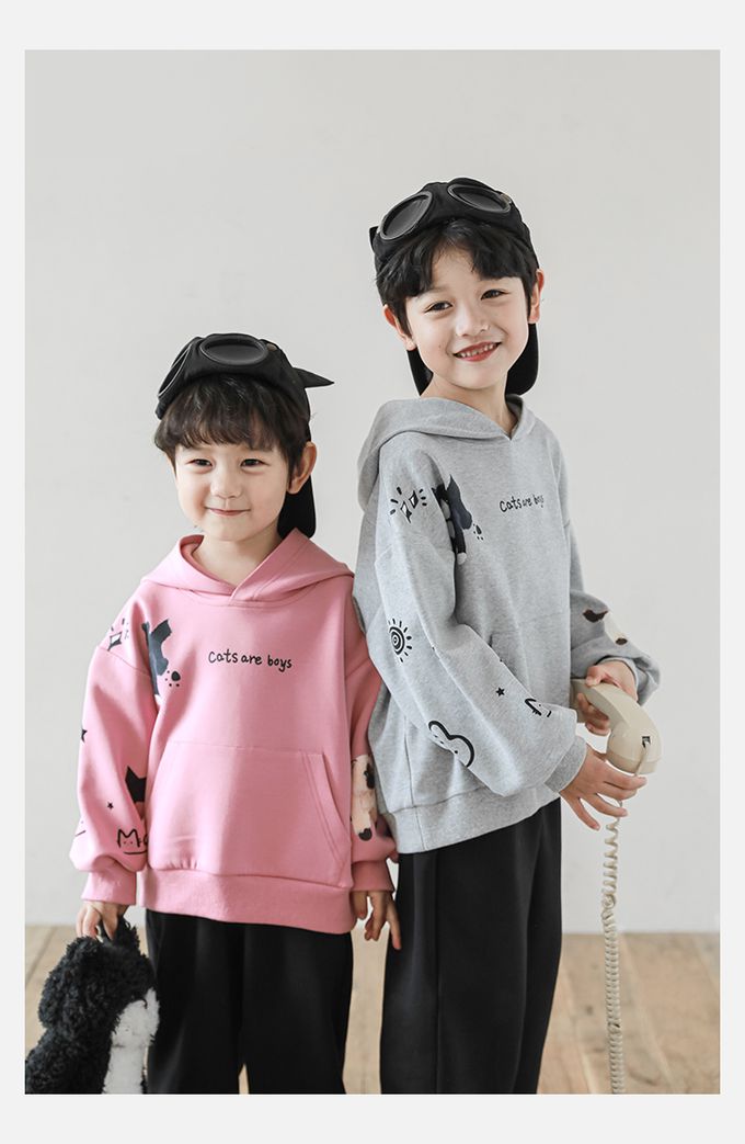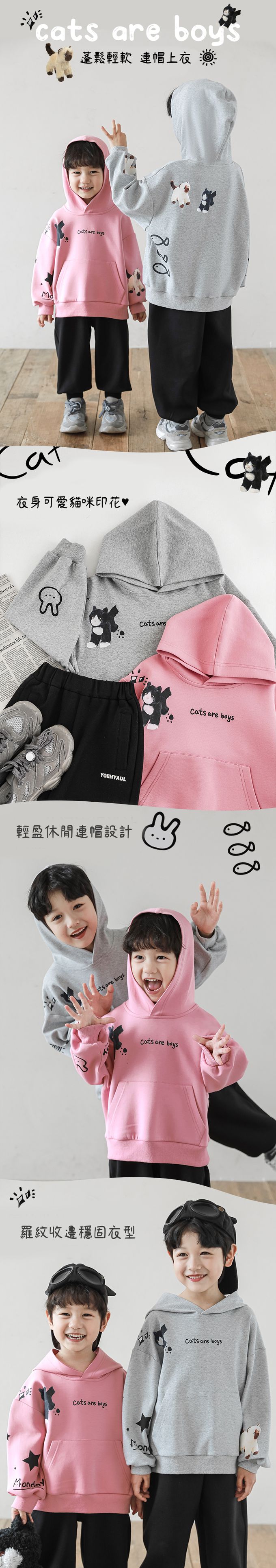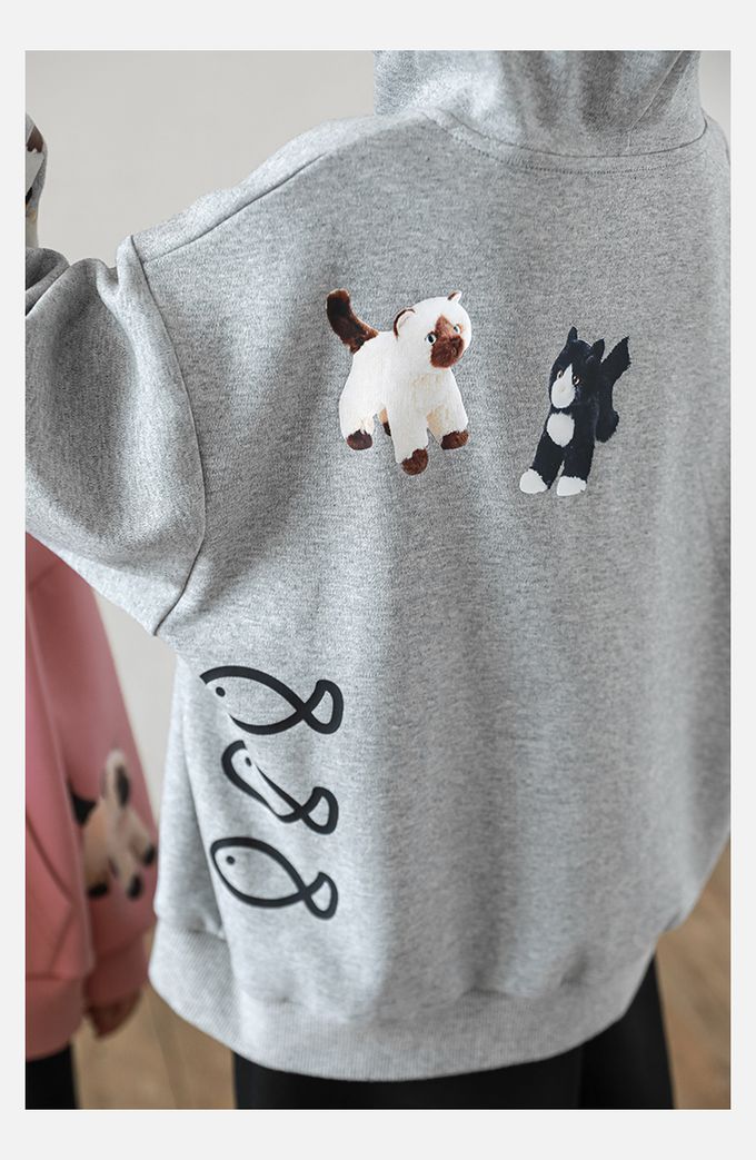 休閒百搭連帽長袖上衣-萌萌貓咪-灰色
