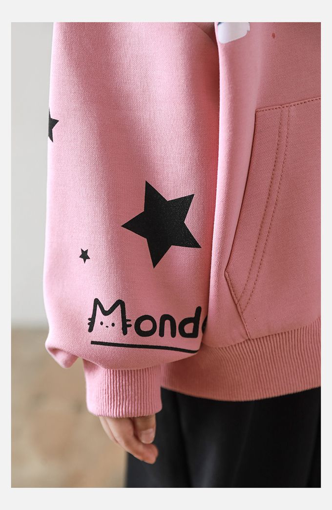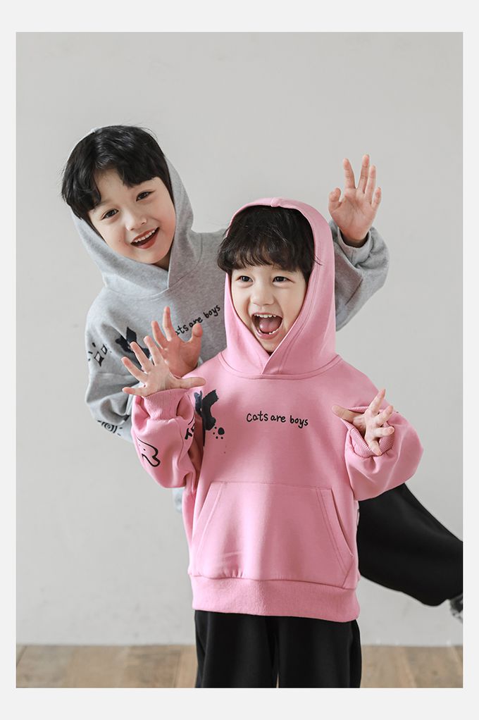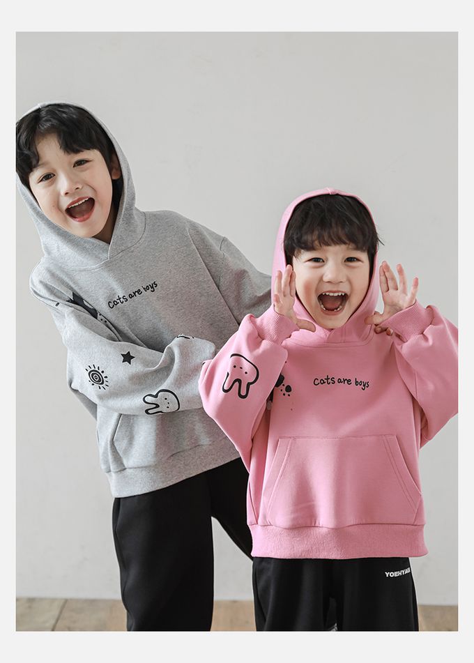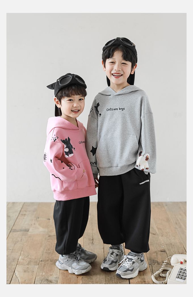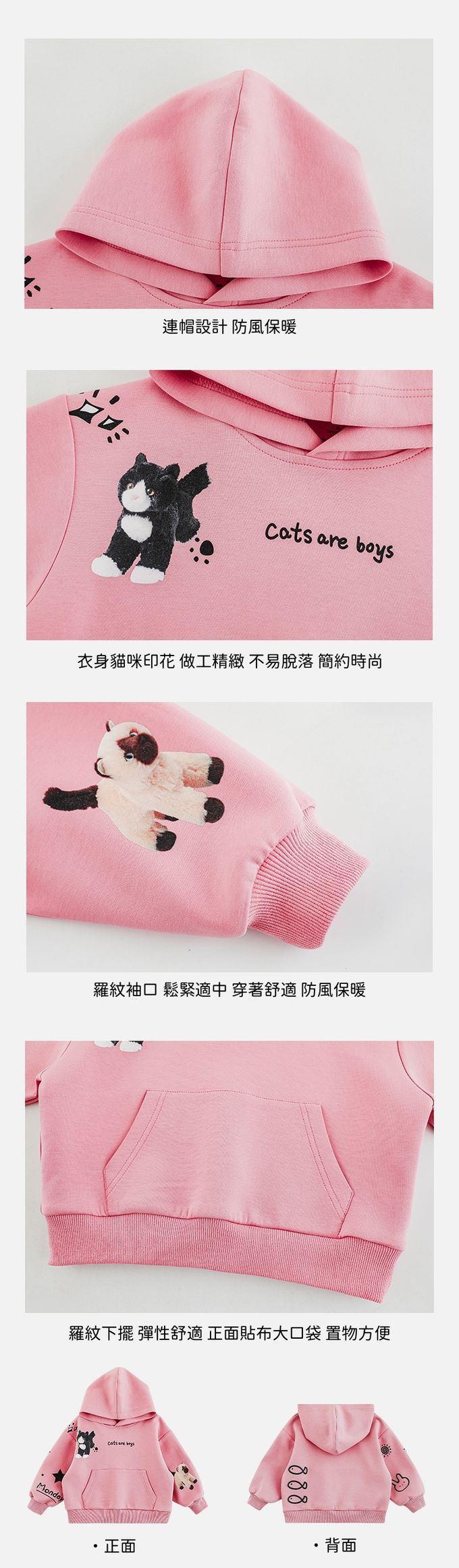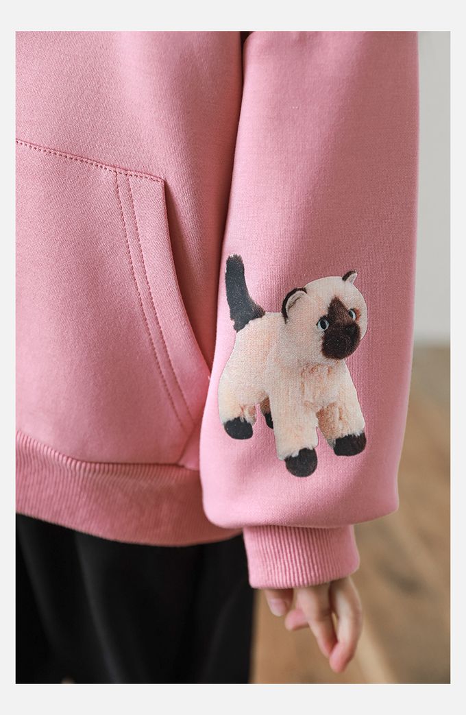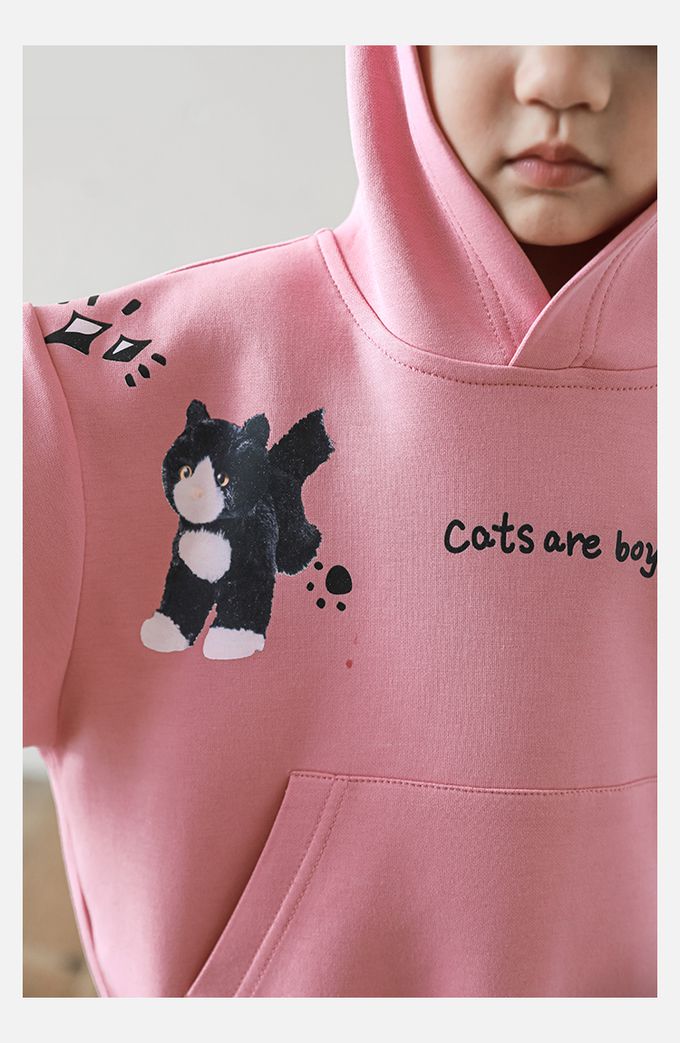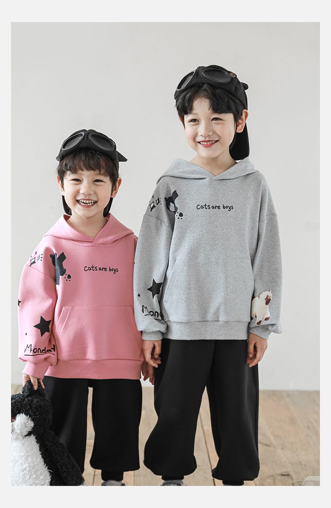 休閒百搭連帽長袖上衣-萌萌貓咪-灰色