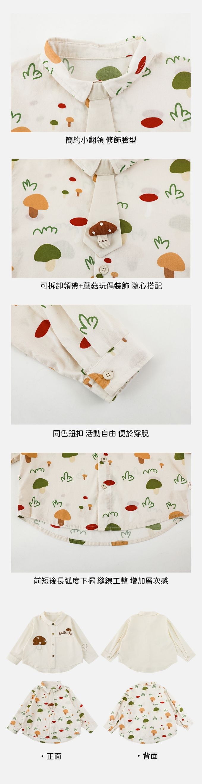 可拆卸領帶+蘑菇玩偶裝飾,隨心情搭配