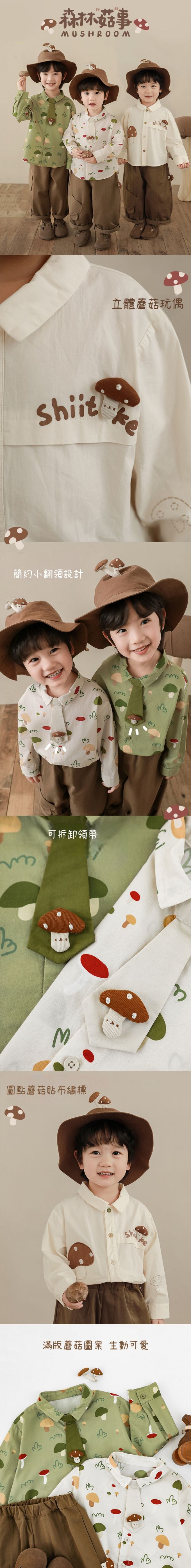 純棉休閒長袖襯衫-蘑菇森林-綠色
