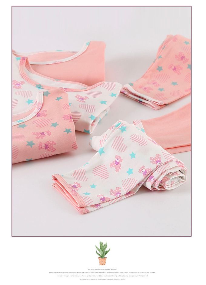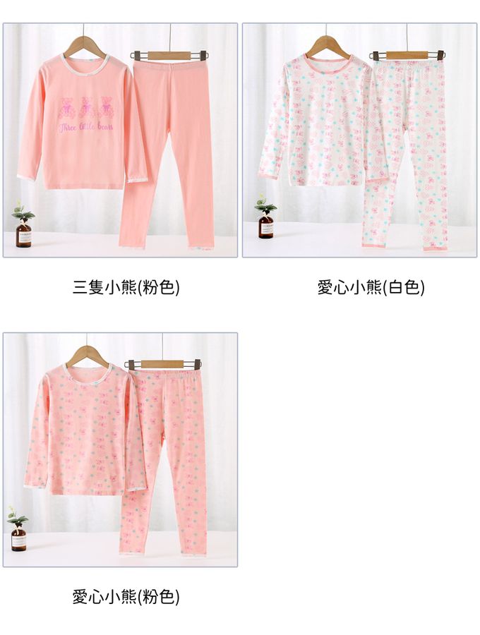 透氣舒適圓領長袖套裝/家居服-愛心小熊-白色