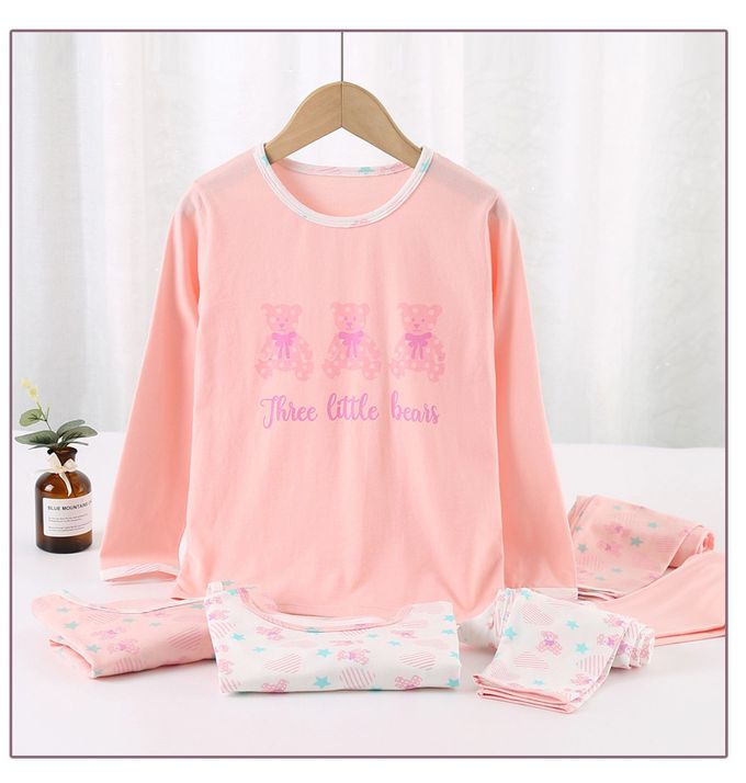 MAMDADKIDS - 透氣舒適圓領長袖套裝/家居服-三隻小兔-粉色