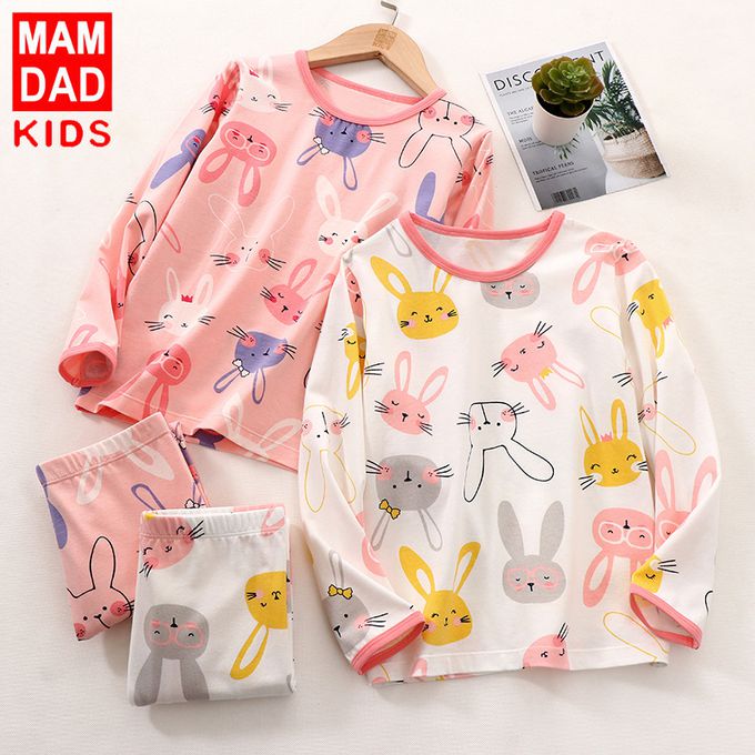 MAMDADKIDS - 透氣舒適圓領長袖套裝/家居服-三隻小兔-粉色
