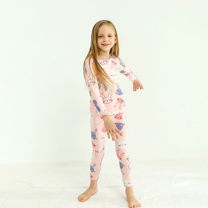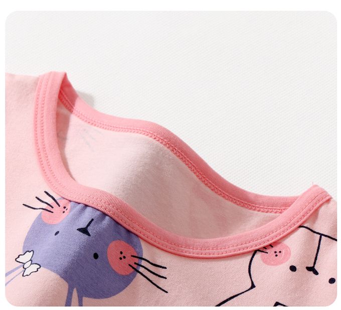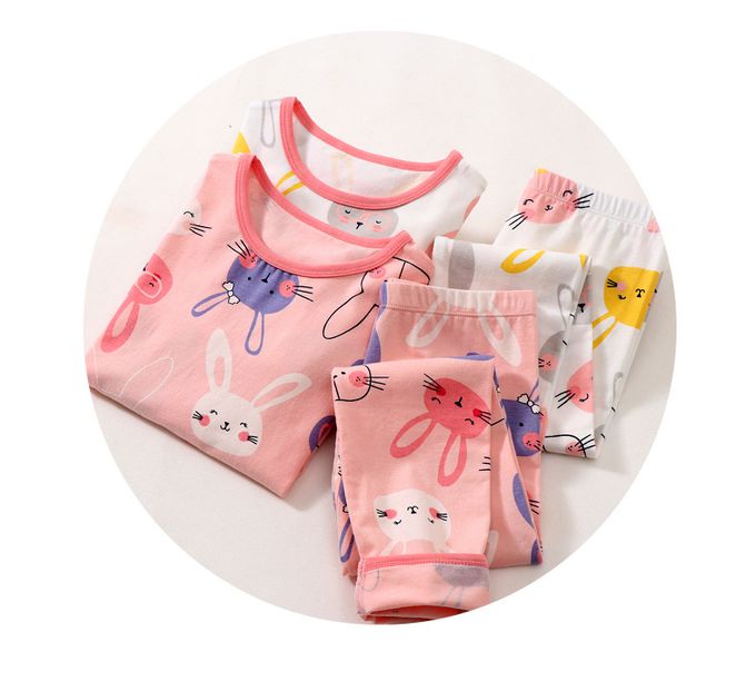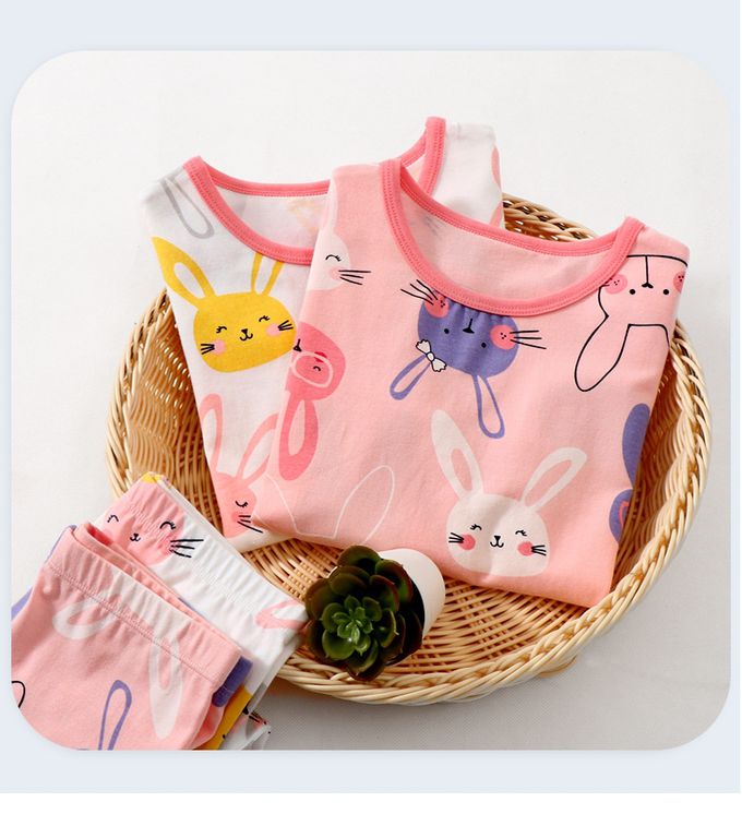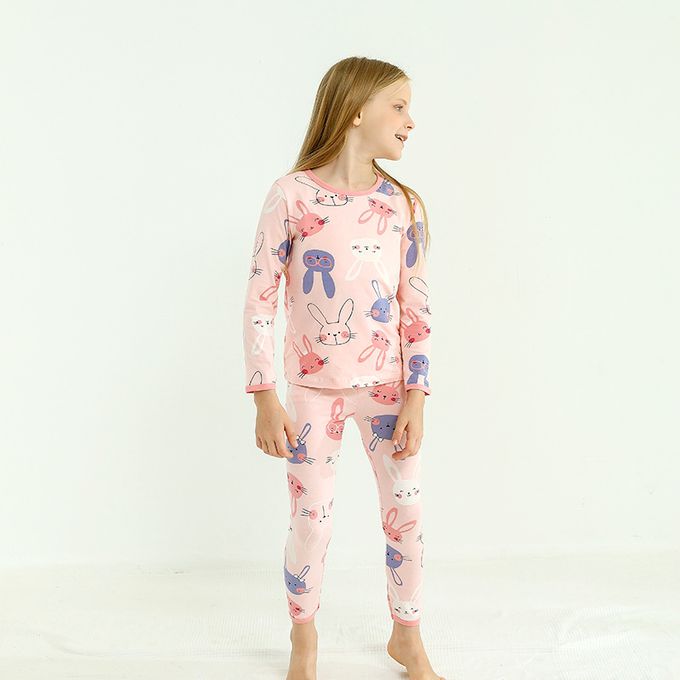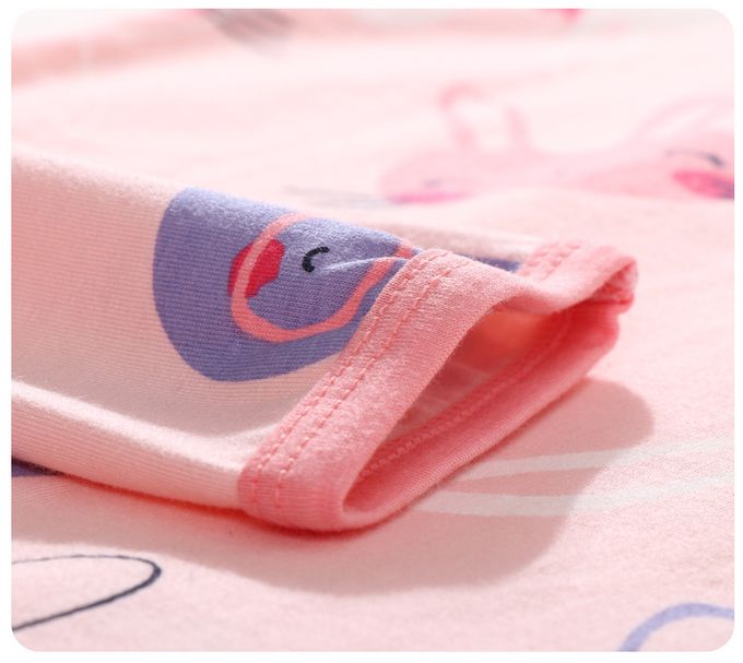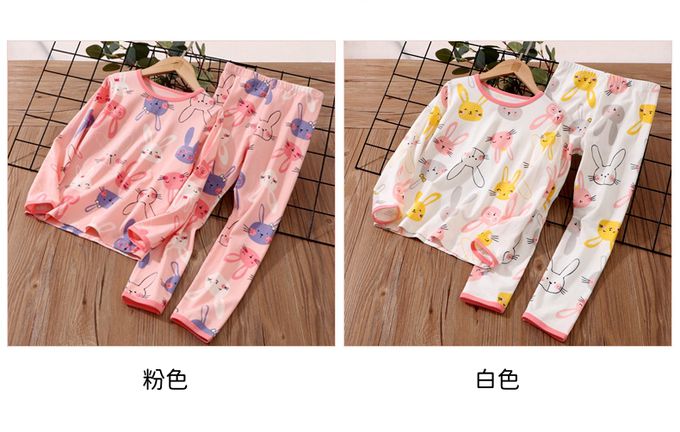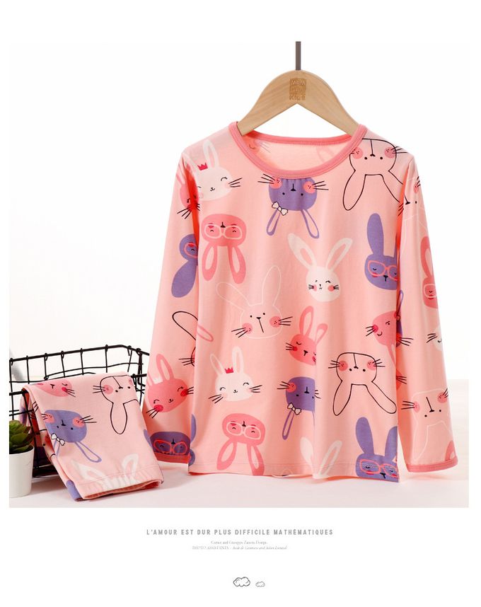 透氣舒適圓領長袖套裝/家居服-多彩小兔-粉色