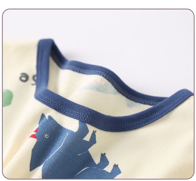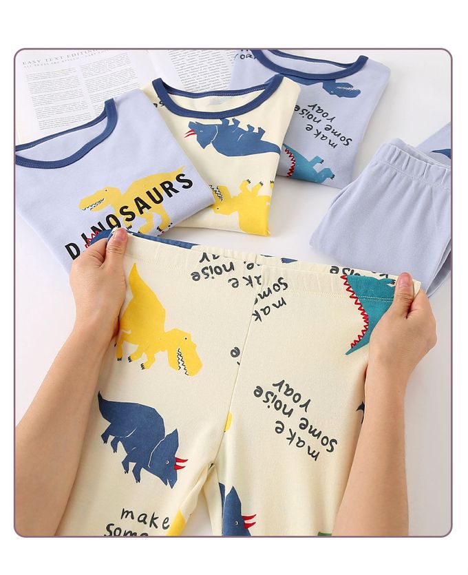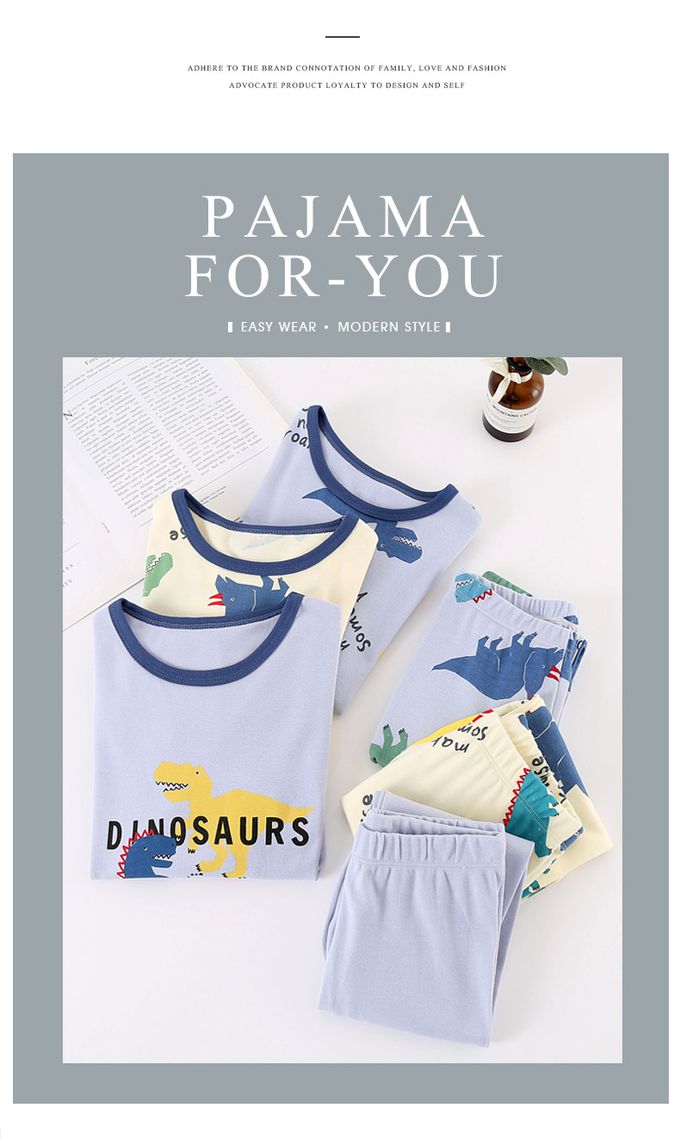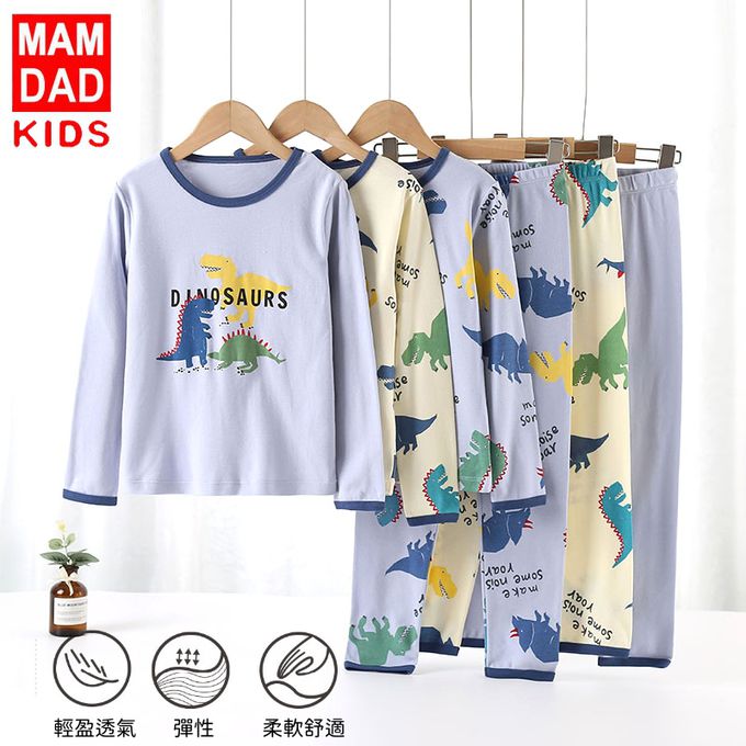 純棉圓領長袖套裝/家居服-大恐龍-藍色