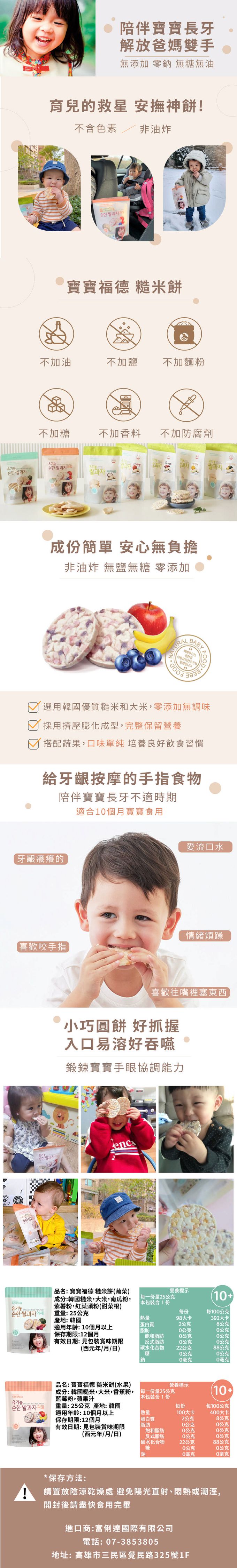 • 成分:水果-韓國糙米,大米,藍莓粉,香蕉粉,蘋果汁