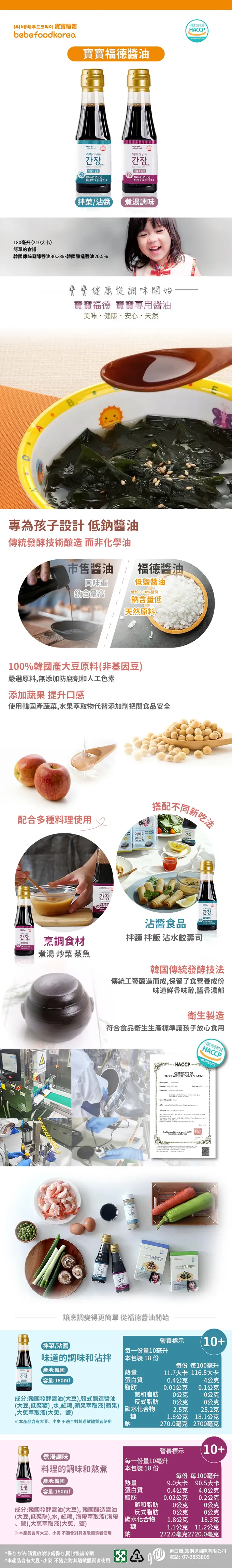 成分:拌菜/沾醬-韓式醬油、韓式大豆醬油、水、低聚糖、綠茶萃取液、糖、蘋果萃取液、大蔥萃取液