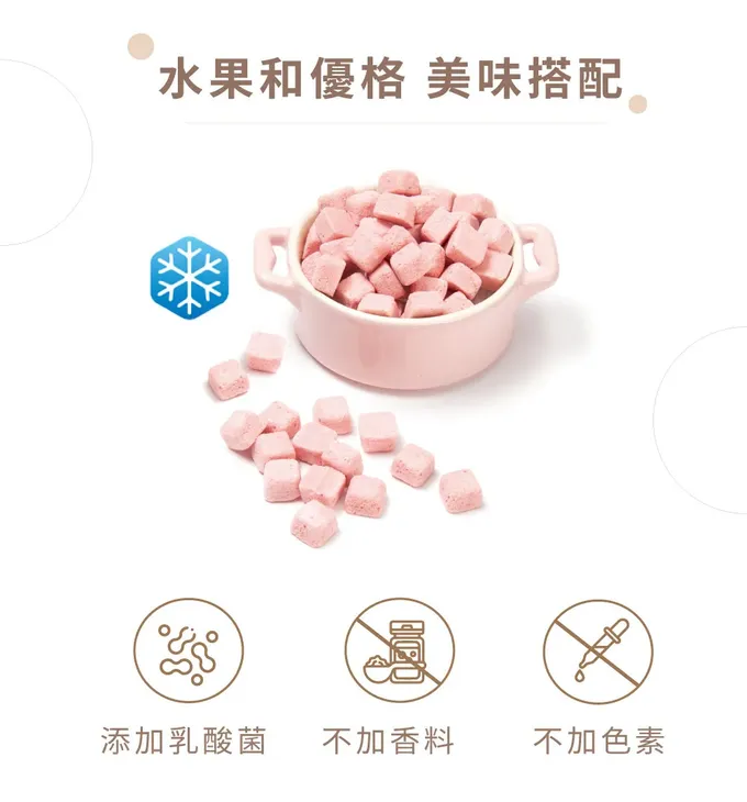 成分:草莓,原味優格(牛奶,寡糖, 白糖,果膠, 乳酸菌),糊精, 白糖