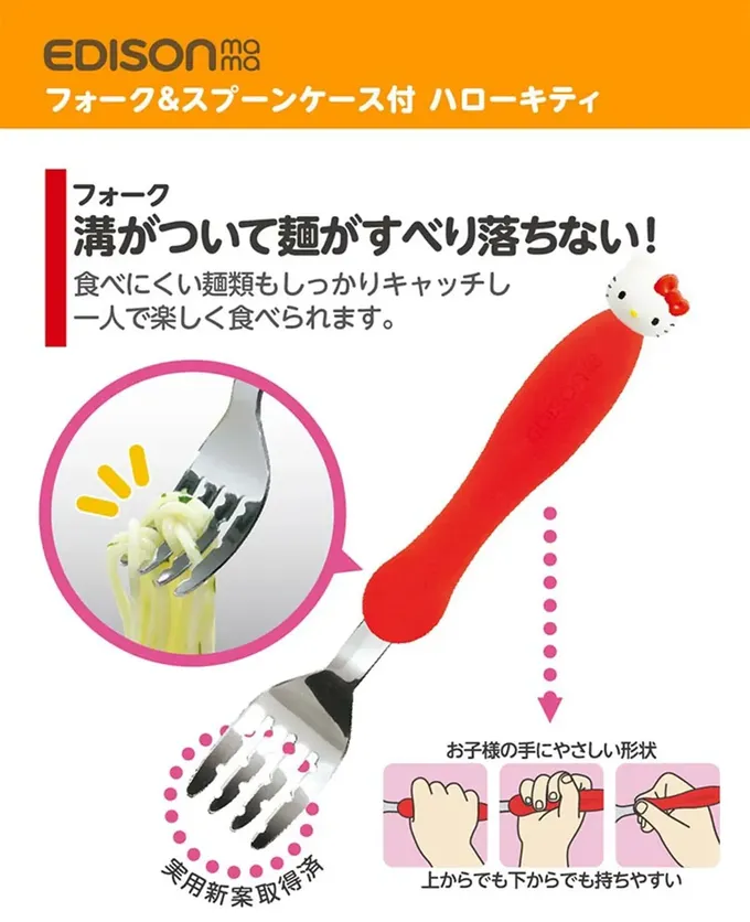 幼兒不鏽鋼學習湯叉組 含盒(hello kitty 學習餐具)-紅(叉)+黃(匙)