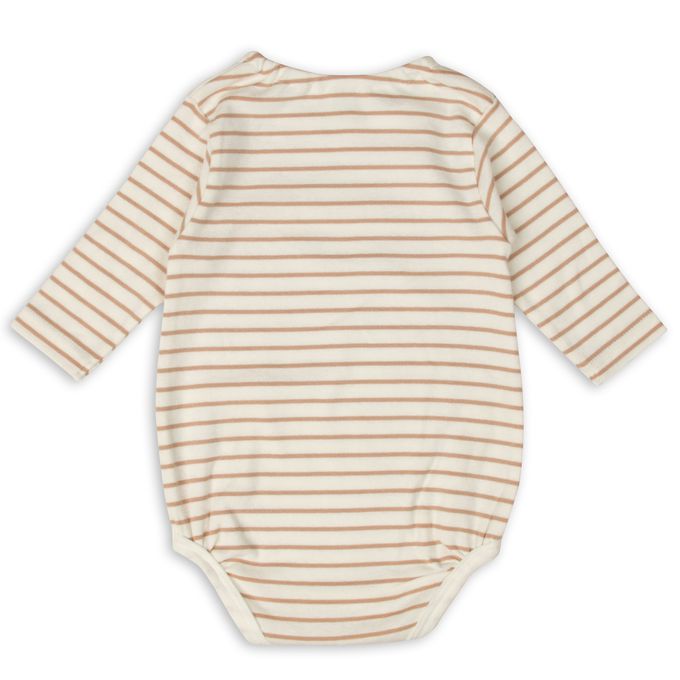 長袖經典包屁衣-羅紋針織-淺卡其色