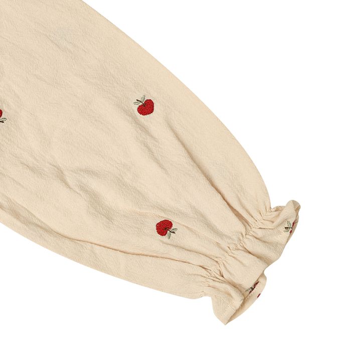 並使用了象牙白底蘋果圖案的布料