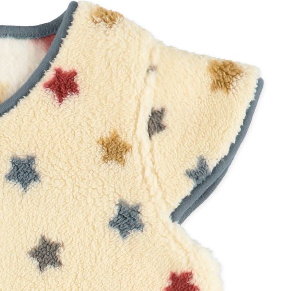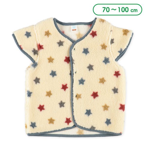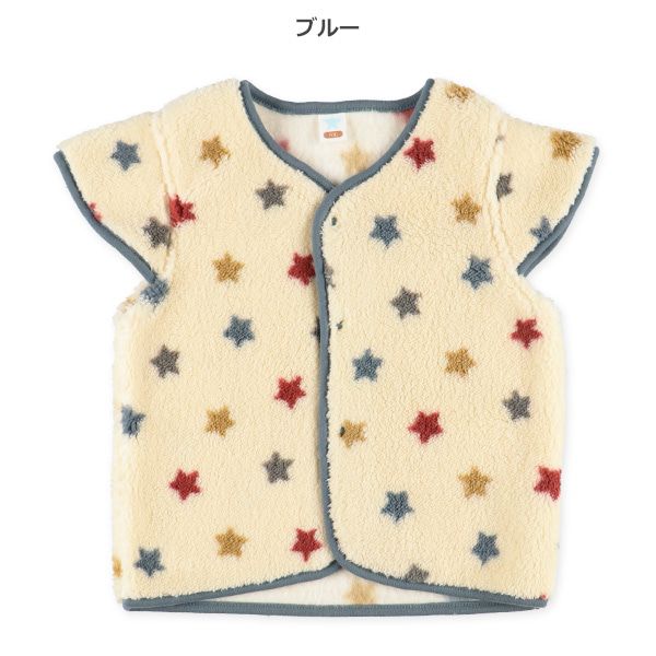 日本西松屋 - 搖粒絨保暖背心/家居服-彩色星星-灰藍
