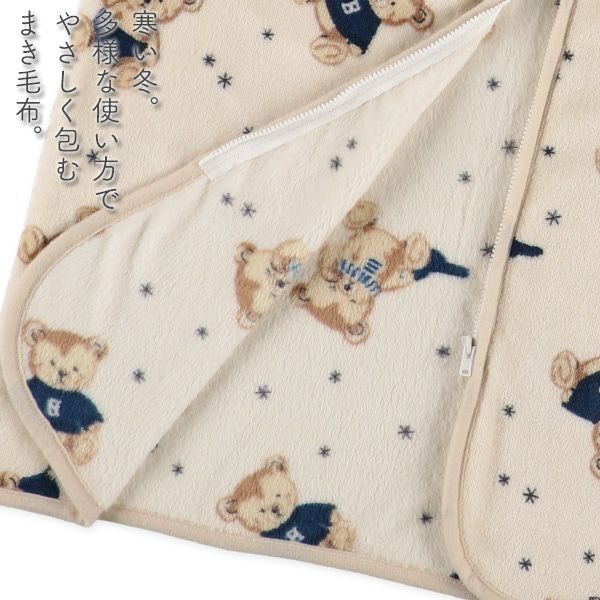 日本西松屋 - 前開式保暖防踢背心/防踢被-滿版小熊-卡其棕(2~8歲)