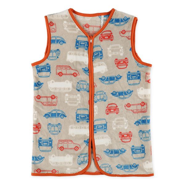 前開式保暖防踢背心/防踢被-線條車車-灰x紅(2~8歲)