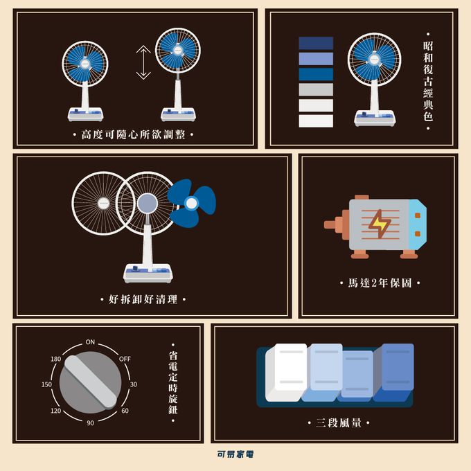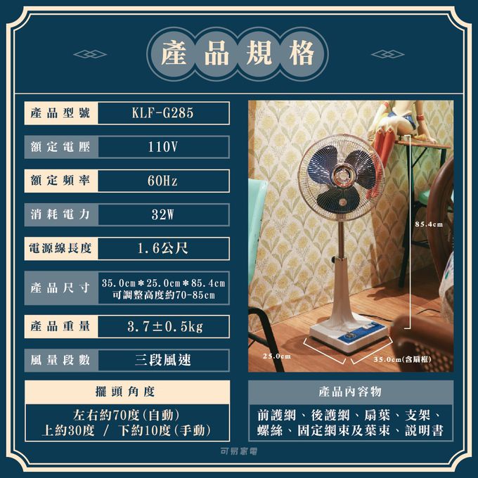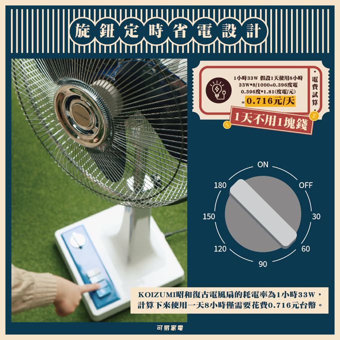品名:日本KOIZUMI 12吋復古電風扇 (藍白款)