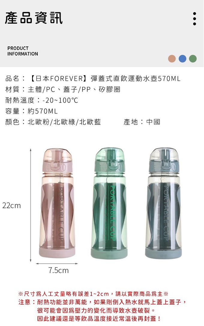 品名:彈蓋式直飲運動水壺570ML 買一送一