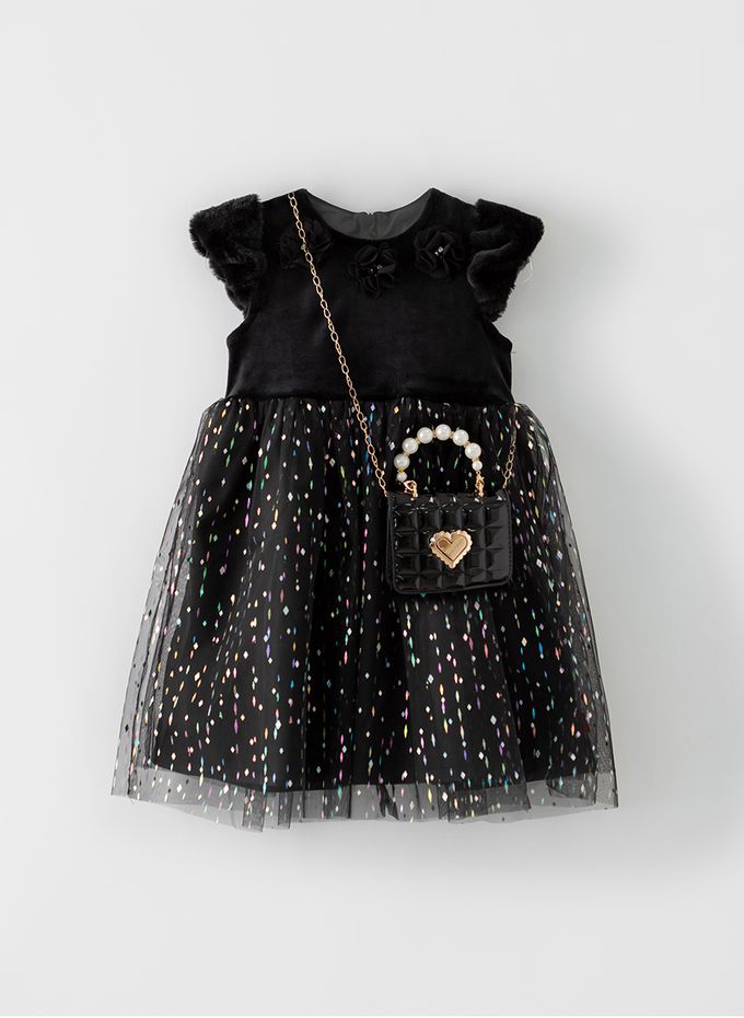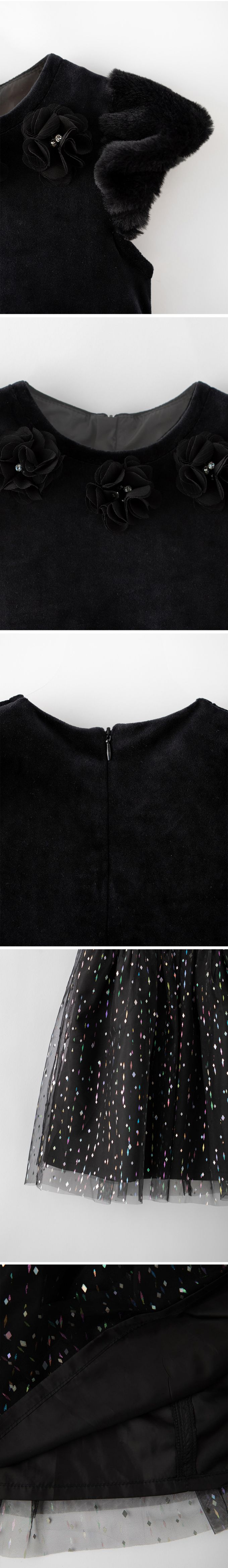 韓國 OZKIZ - (附包包)天鵝絨背心拼接亮片網紗洋裝-黑